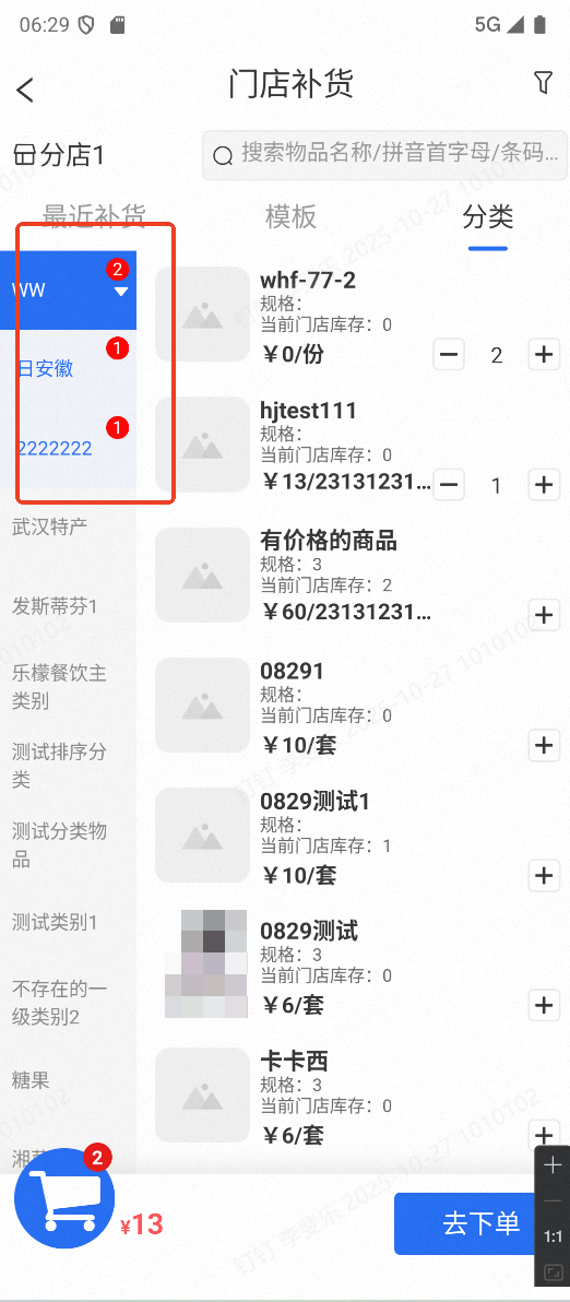 APP端供应链单据,选择物品页面加购物品后,按物品种类展示,几种物品展示对应数字,不论物品录入了多少数量。