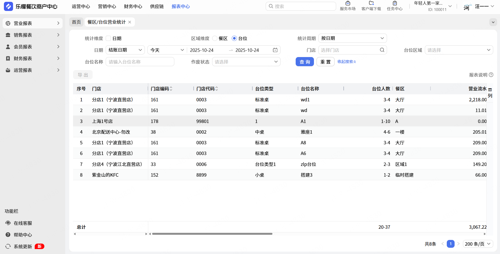 【报表】餐区/台位营业报表统计非台位POS点餐数据