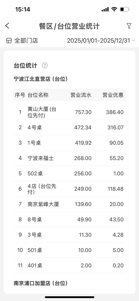 2.APP餐区/台位营业统计统计非台位点餐数据。