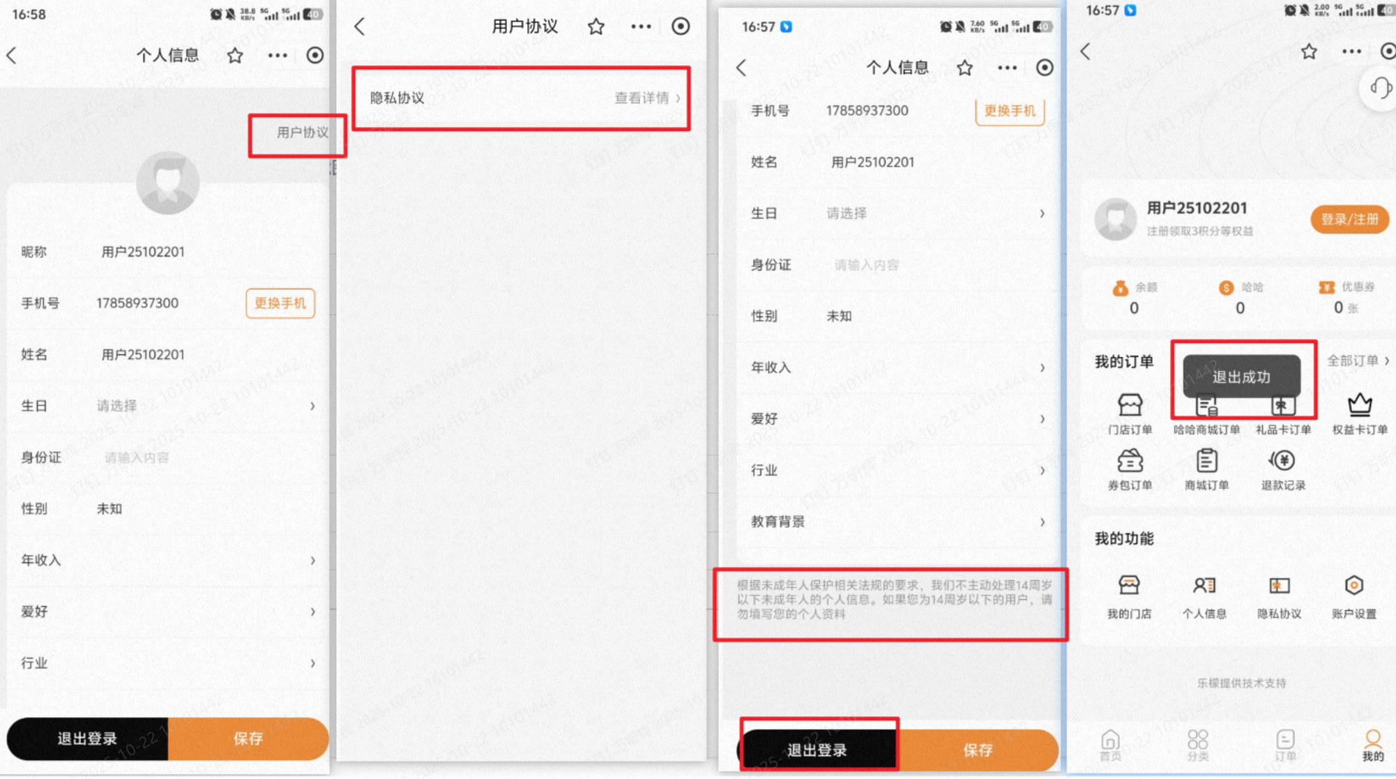 支付宝小程序与微信小程序一致,支持退出操作,增加用户协议入口,增加未成年人报表相关说明。