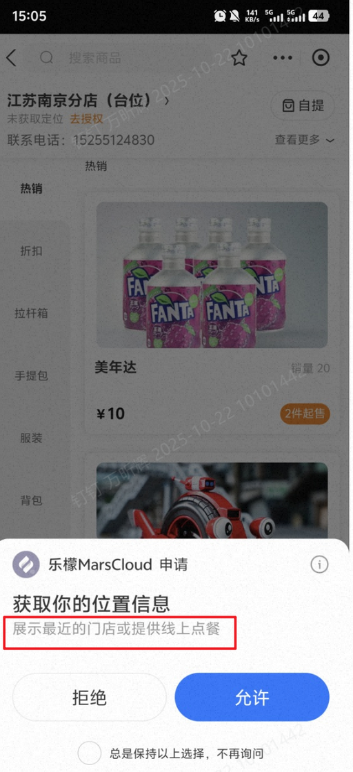 首次进入商品分类页时,如果未获取位置信息,主动弹窗申请获取位置信息。允许:获取位置信息;拒绝:弹窗关闭可继续下单。
