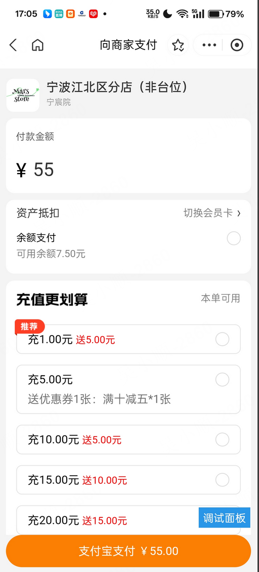微信扫码显示微信支付,支付宝扫码显示支付宝支付。当前门店有储值活动时,直接显示在当前页面。
