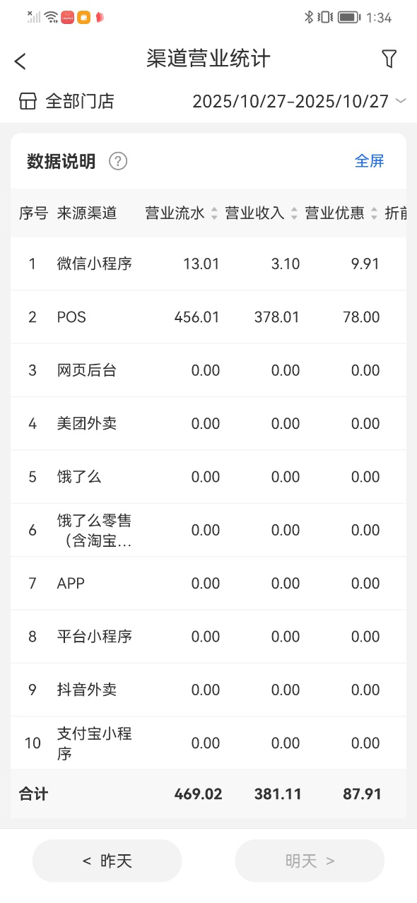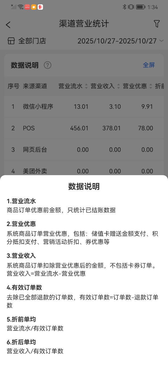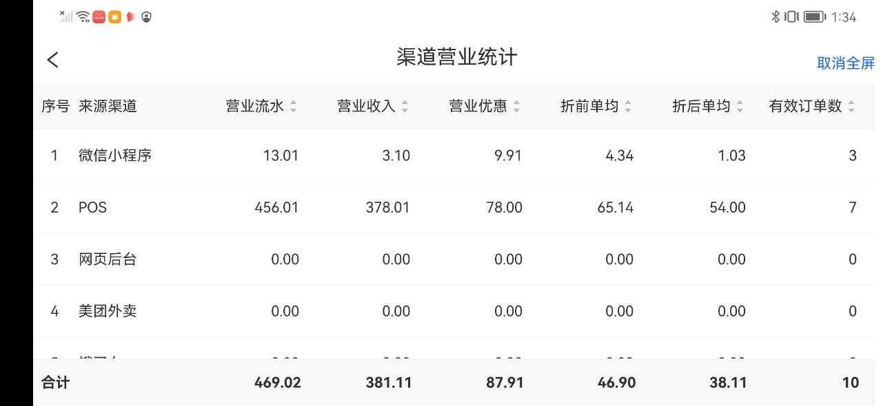 1.APP渠道营业统计报表改为表格形式,支持左右滚动查看更多数据,支持全屏查看。