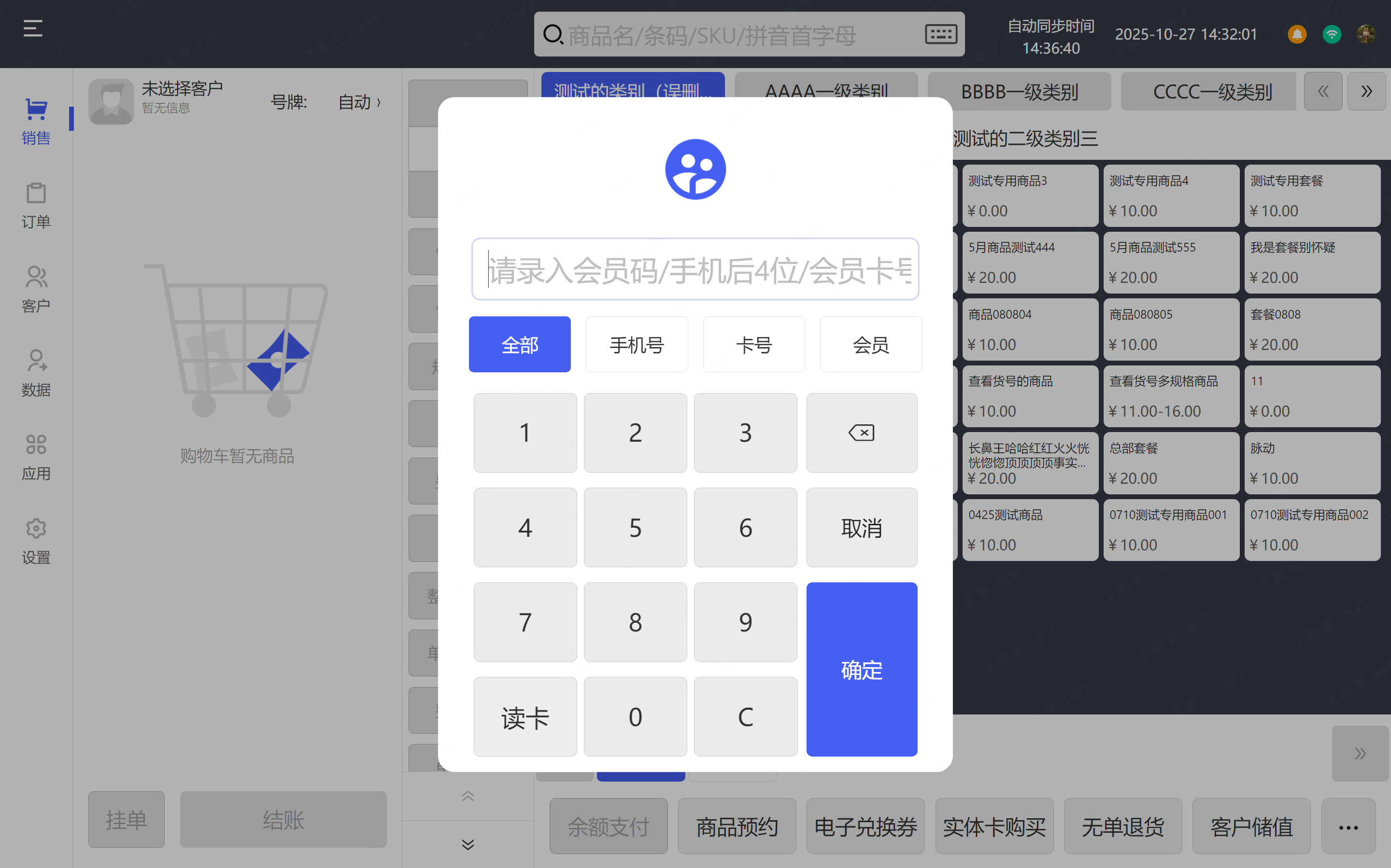 4位默认按会员卡号检索;启用手机号后4位搜索情况下,4位默认按手机号检索