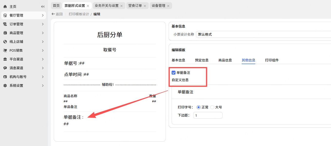 8.【网页】普通模板后厨分单增加打印字段:单据备注