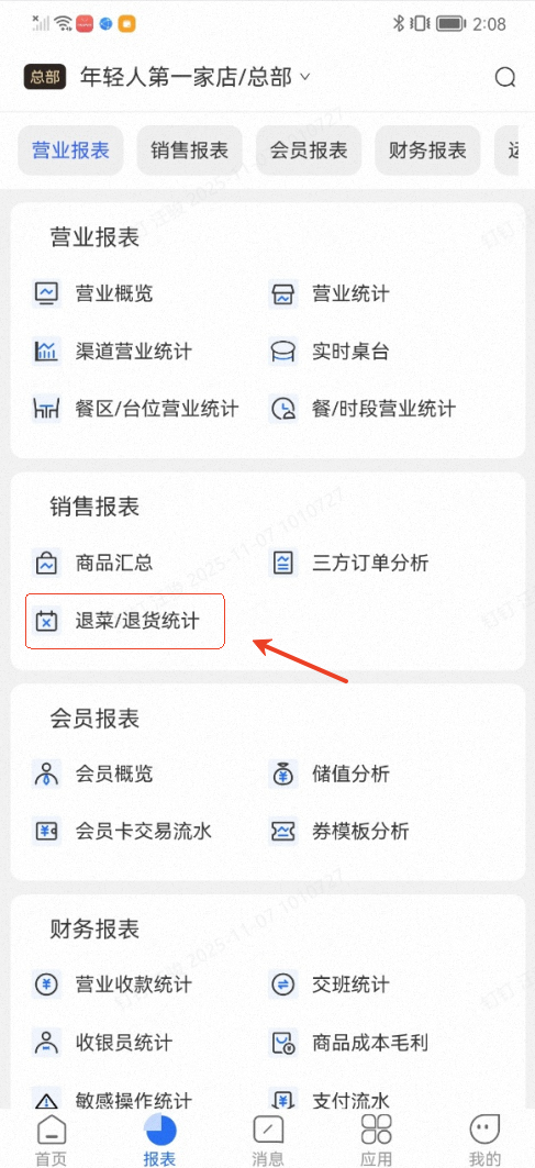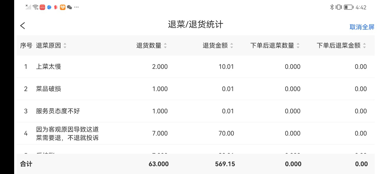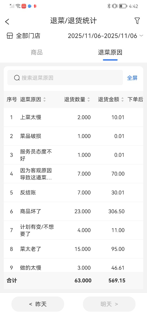 商家在APP查看退菜退货数据,方便了解店内退菜情况