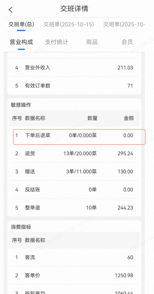 4.交班统计增加敏感操作中,增加下单后退菜。