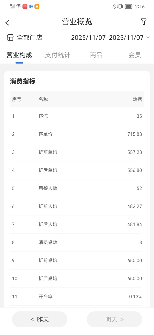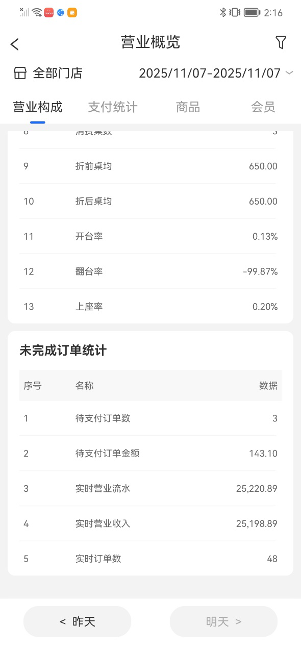 1.营业概览增加营业收入、消费指标、未完成订单统计数据。