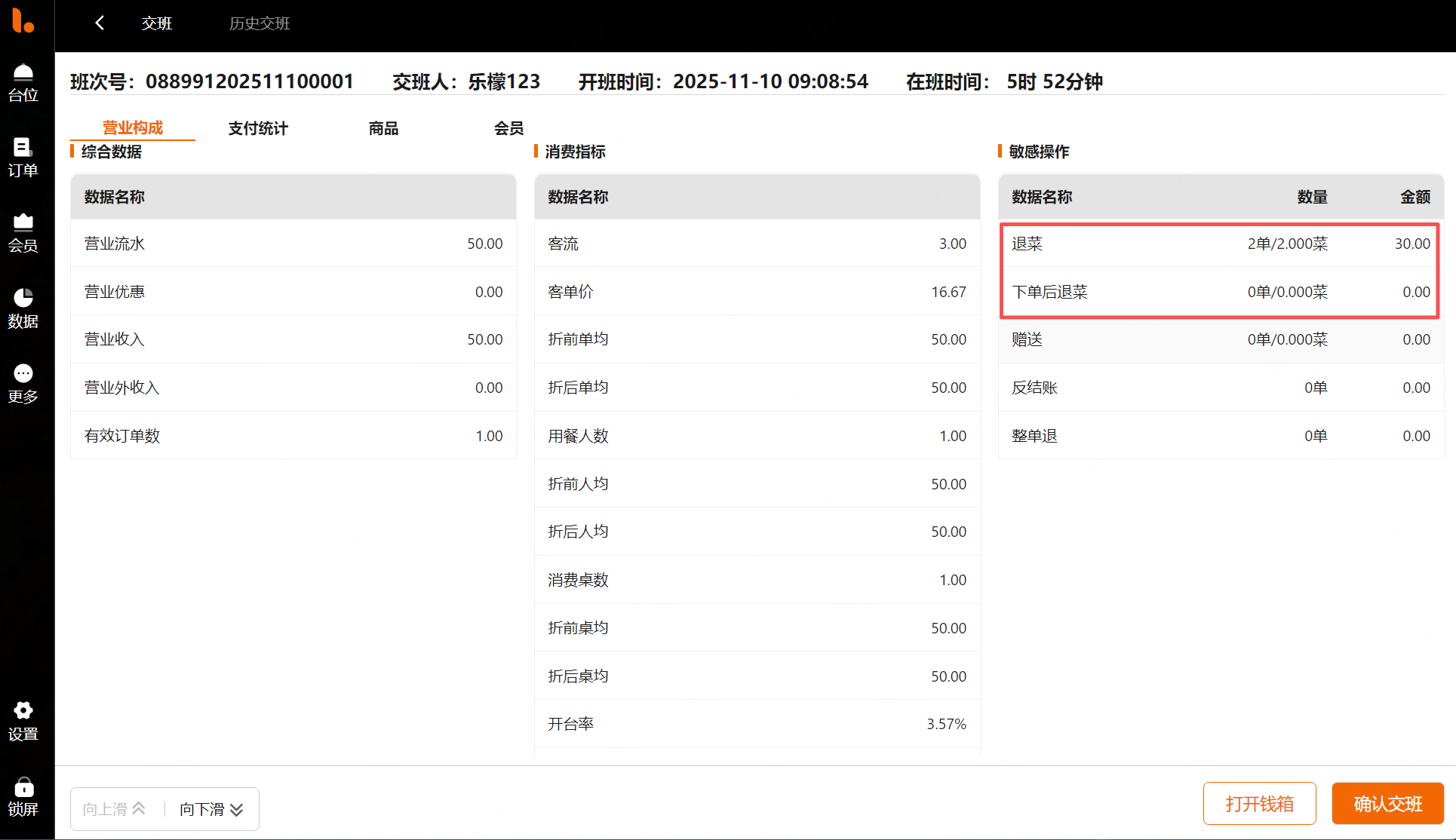 商家做退菜统计需要区分点单退菜和已结账退菜