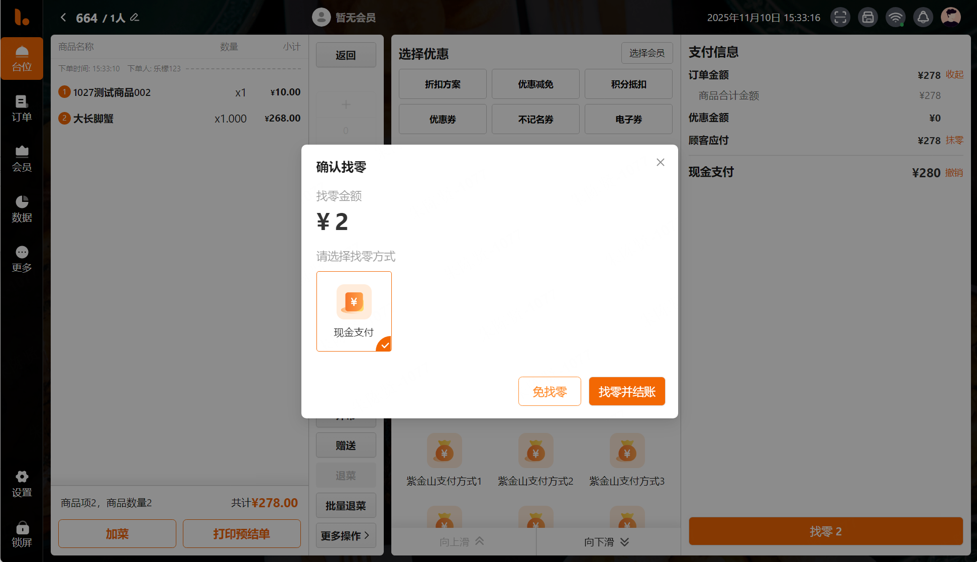 2.免找零:增加一笔免找零的优惠方式,此优惠为正向优惠