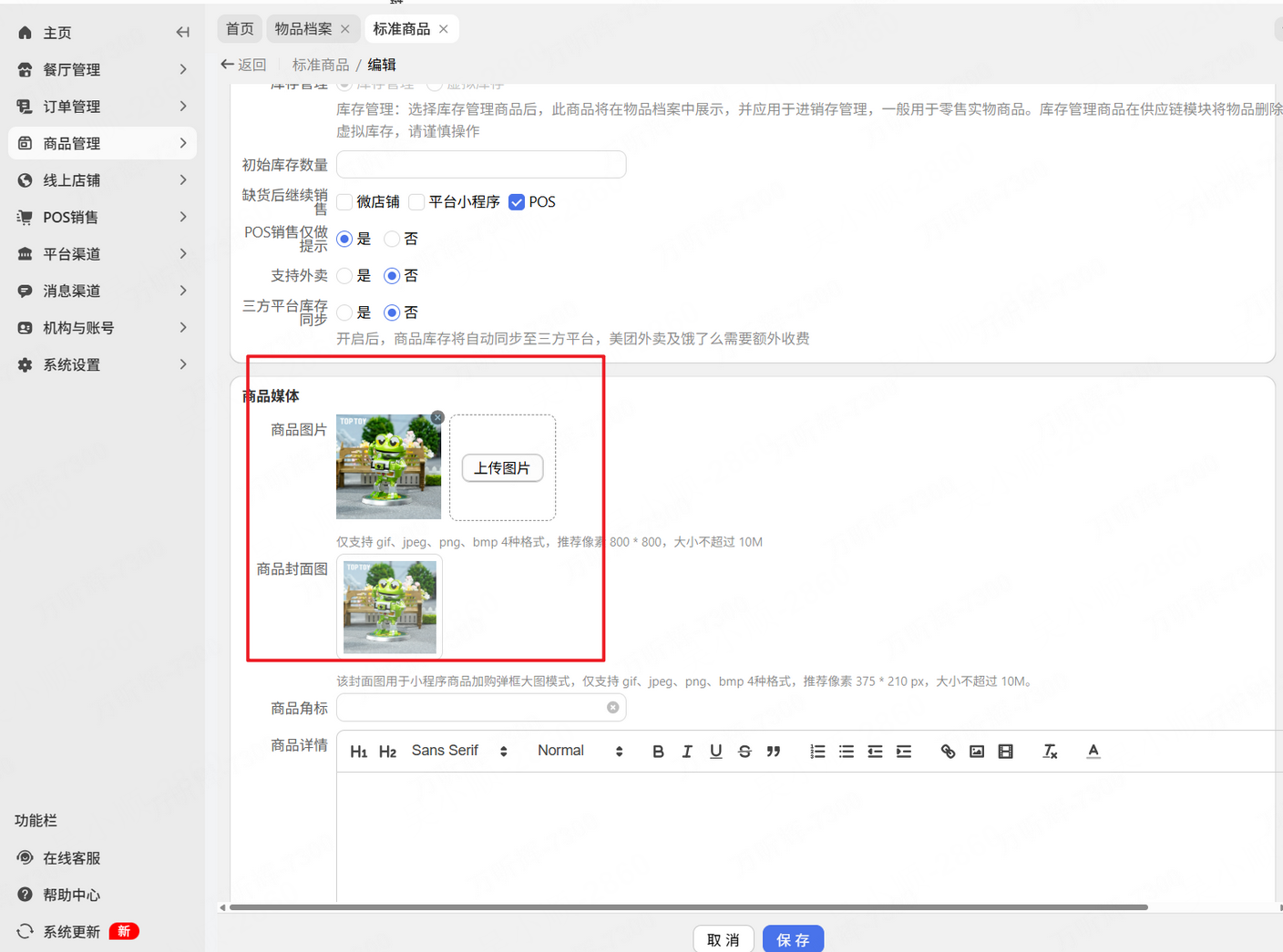 三方物品勾选销售管理生成的商品,支持编辑商品图片和商品封面图。