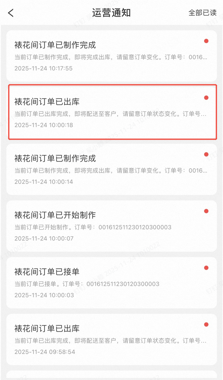 APP端,设置-消息设置-裱花业务,增加“订单出库完成时”,默认开启。