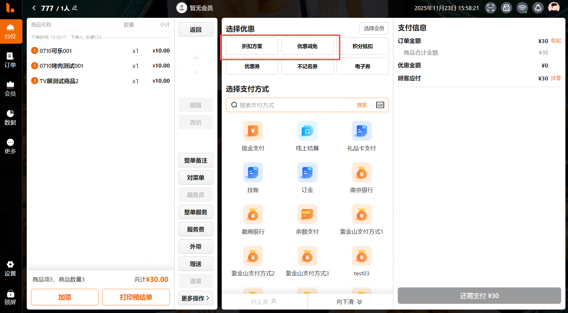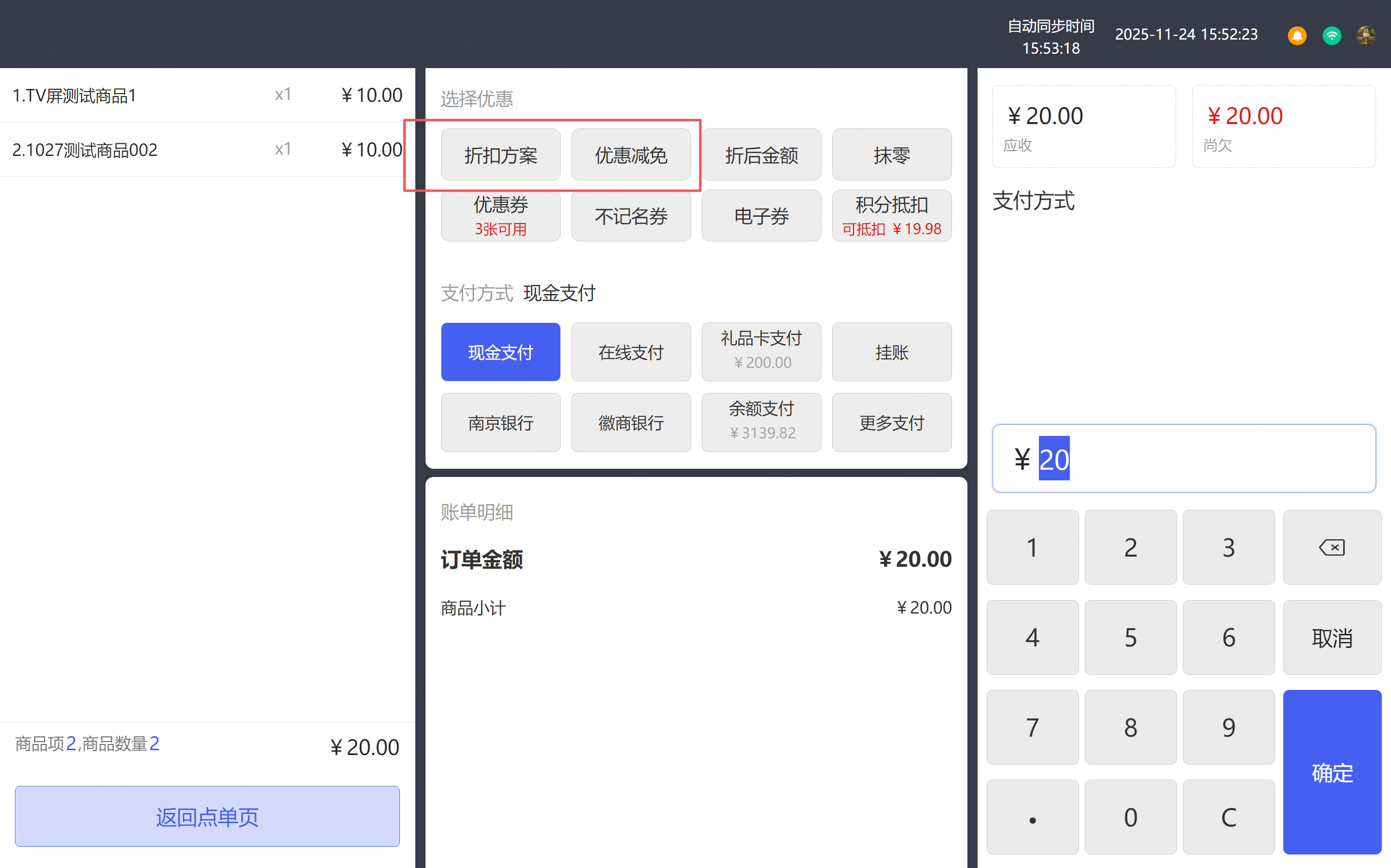 2.最大整单减免金额:控制POS端【优惠减免】录入的减免金额与之匹配判断