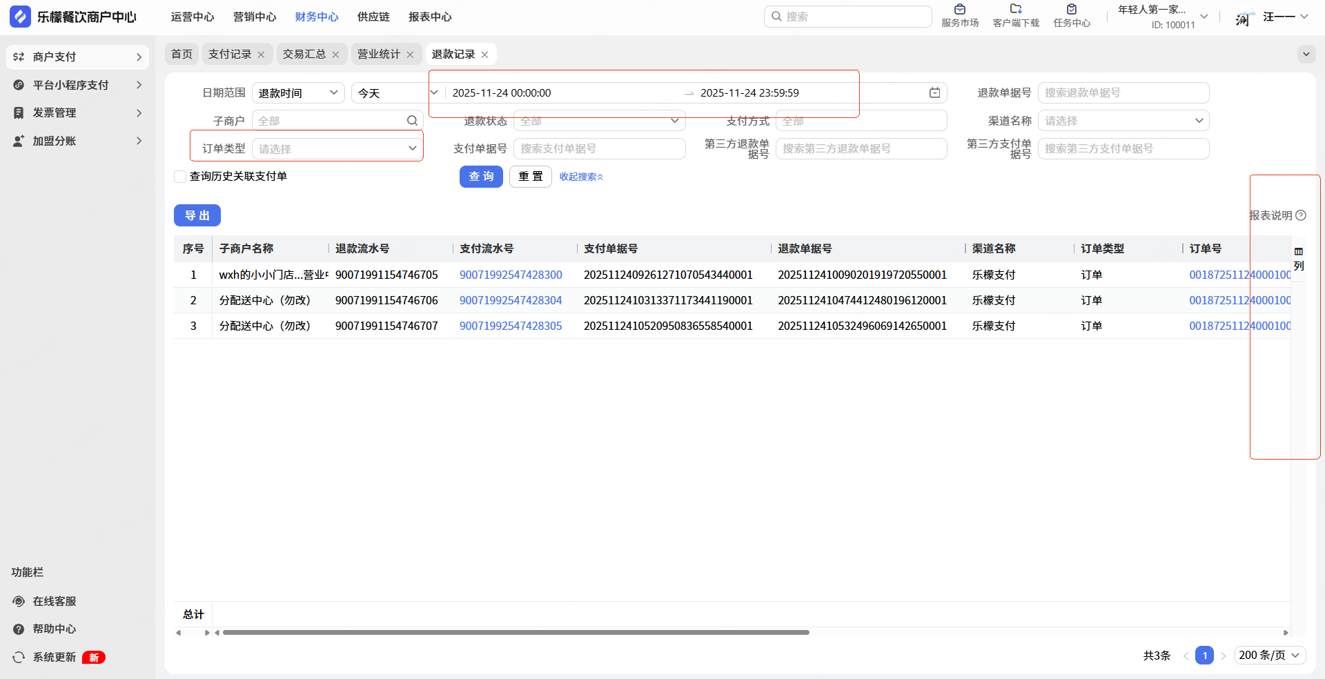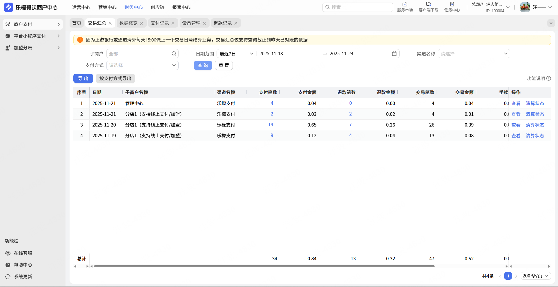 交易汇总查询只能一个渠道查询,支付记录/退款记录展示的字段很多,无法自定义查询。
