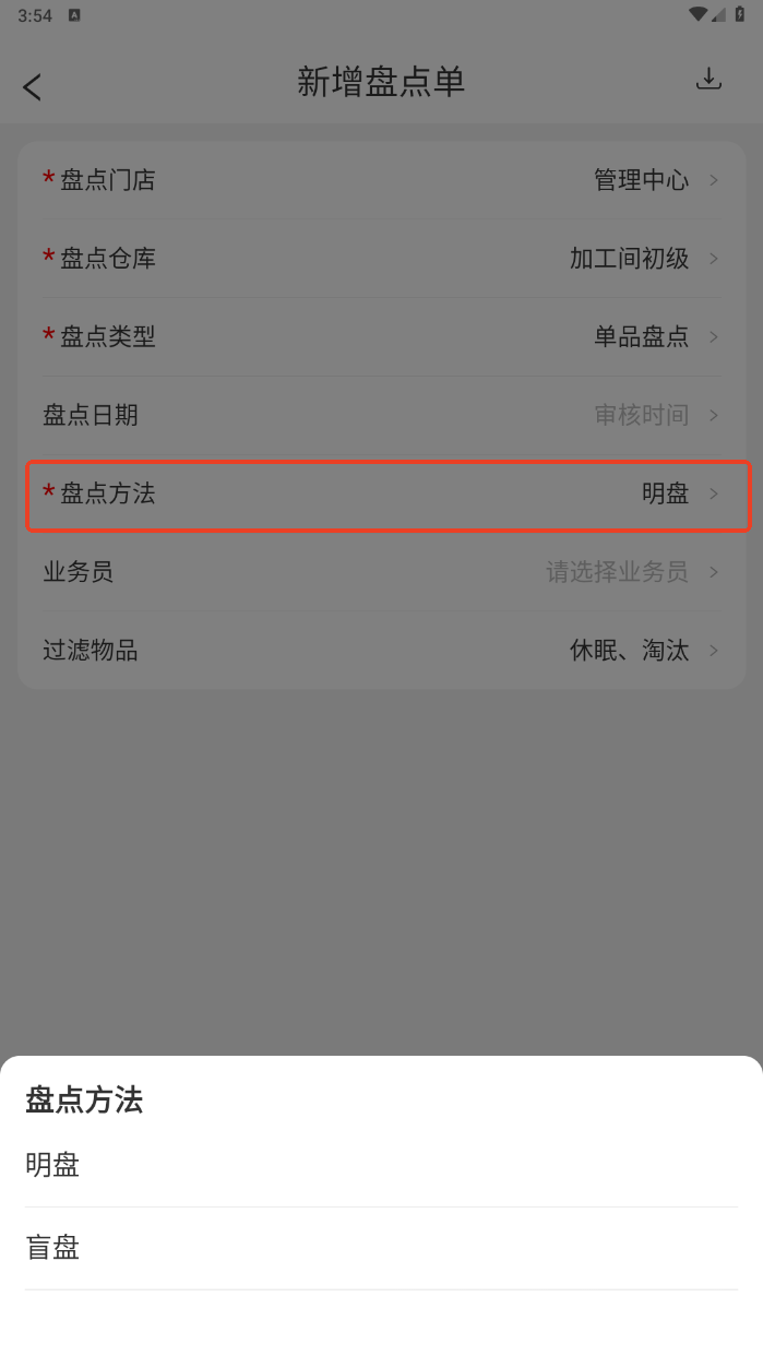 目前部分商户需要控制部分人员只能按盲盘模式进行盘点