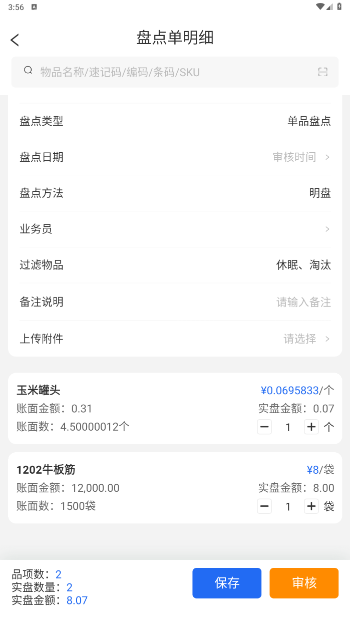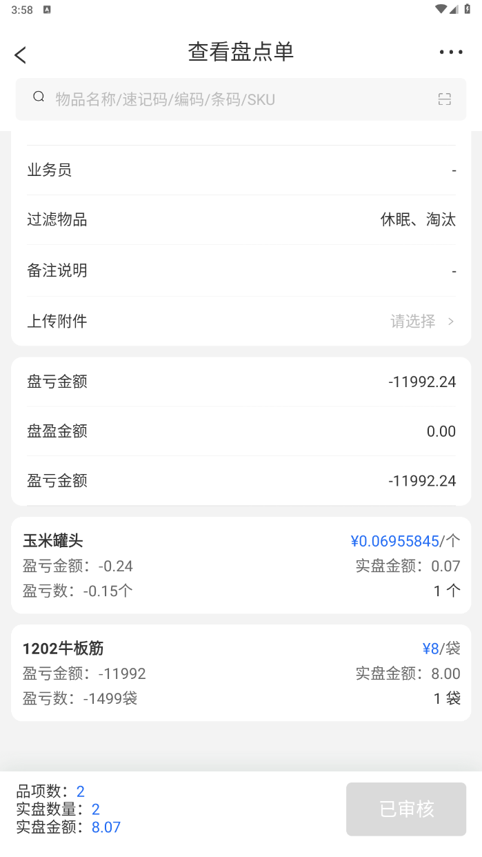 APP端盘点单展示优化,未审核时将展示账面数,审核后将展示盈亏数