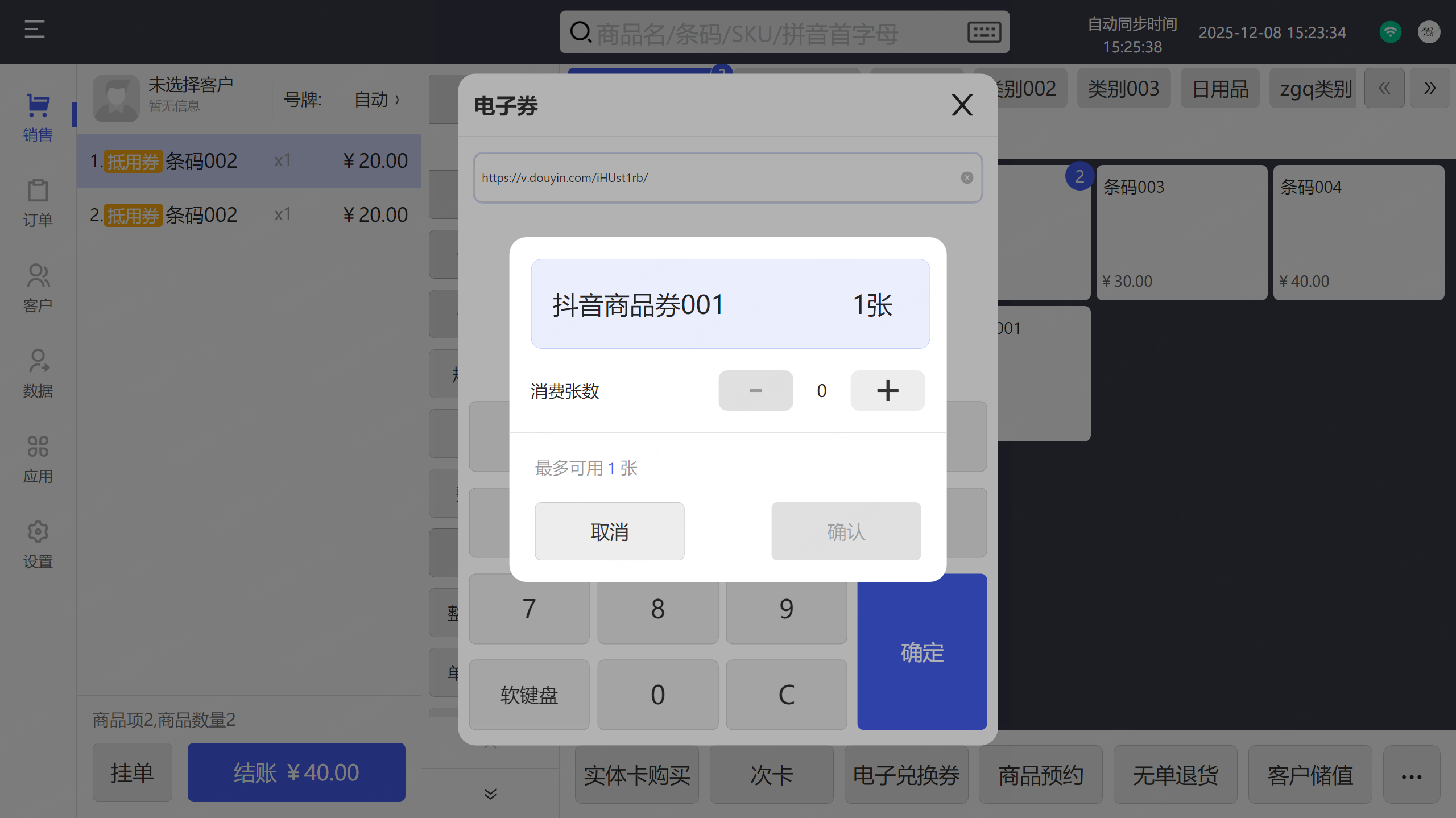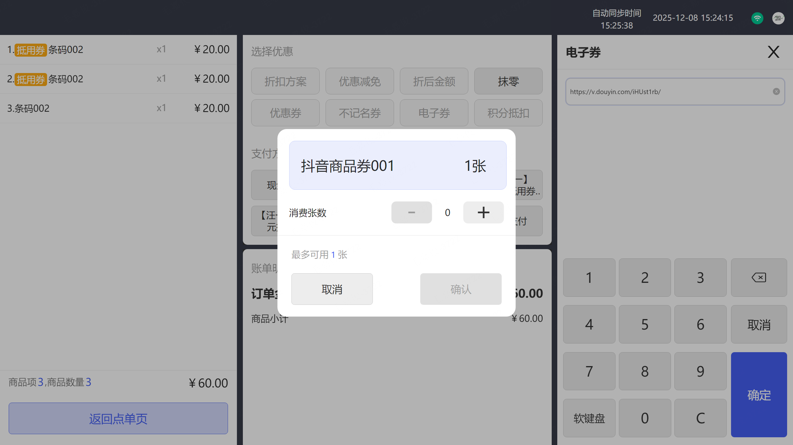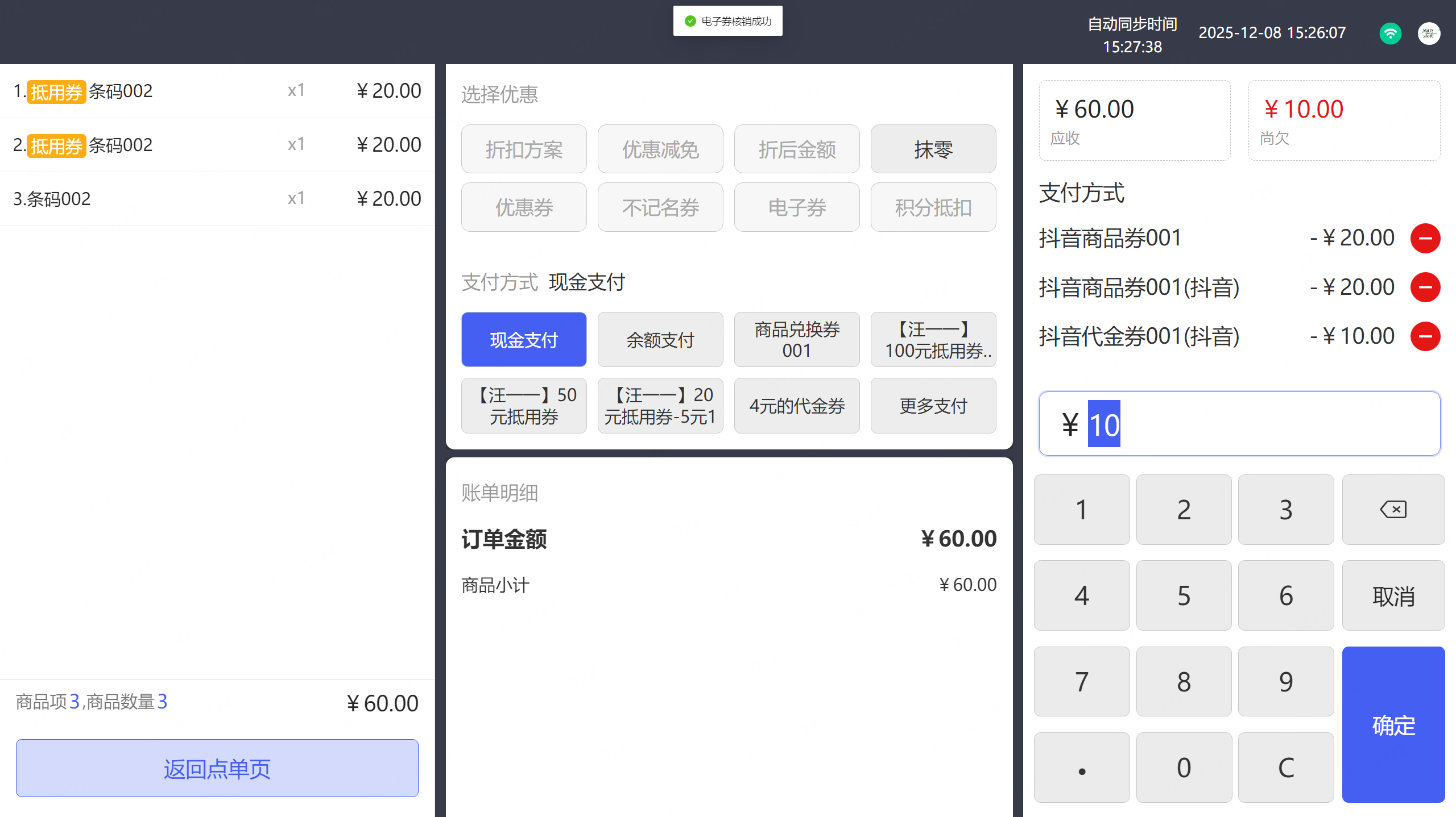 顾客购买三方电子券后允许在商家收银端进行核销操作