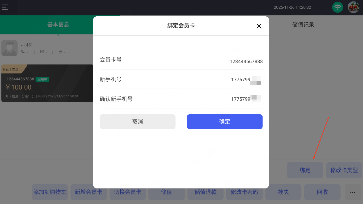1.针对匿名卡绑定手机号时,增加【绑卡】操作记录,展示备注信息。包括POS端、小程序等不同端进行绑卡操作。