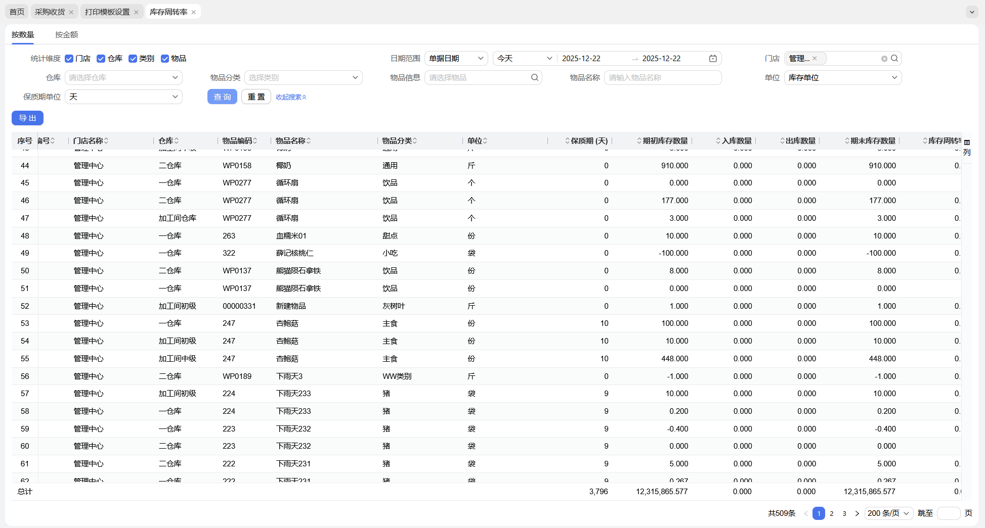 商户希望通过库存周转率报表,查看当前库存的流转情况