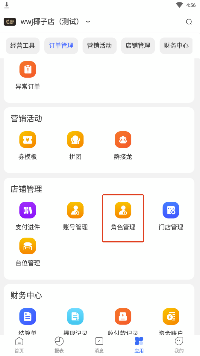 路径:应用-店铺管理-角色管理