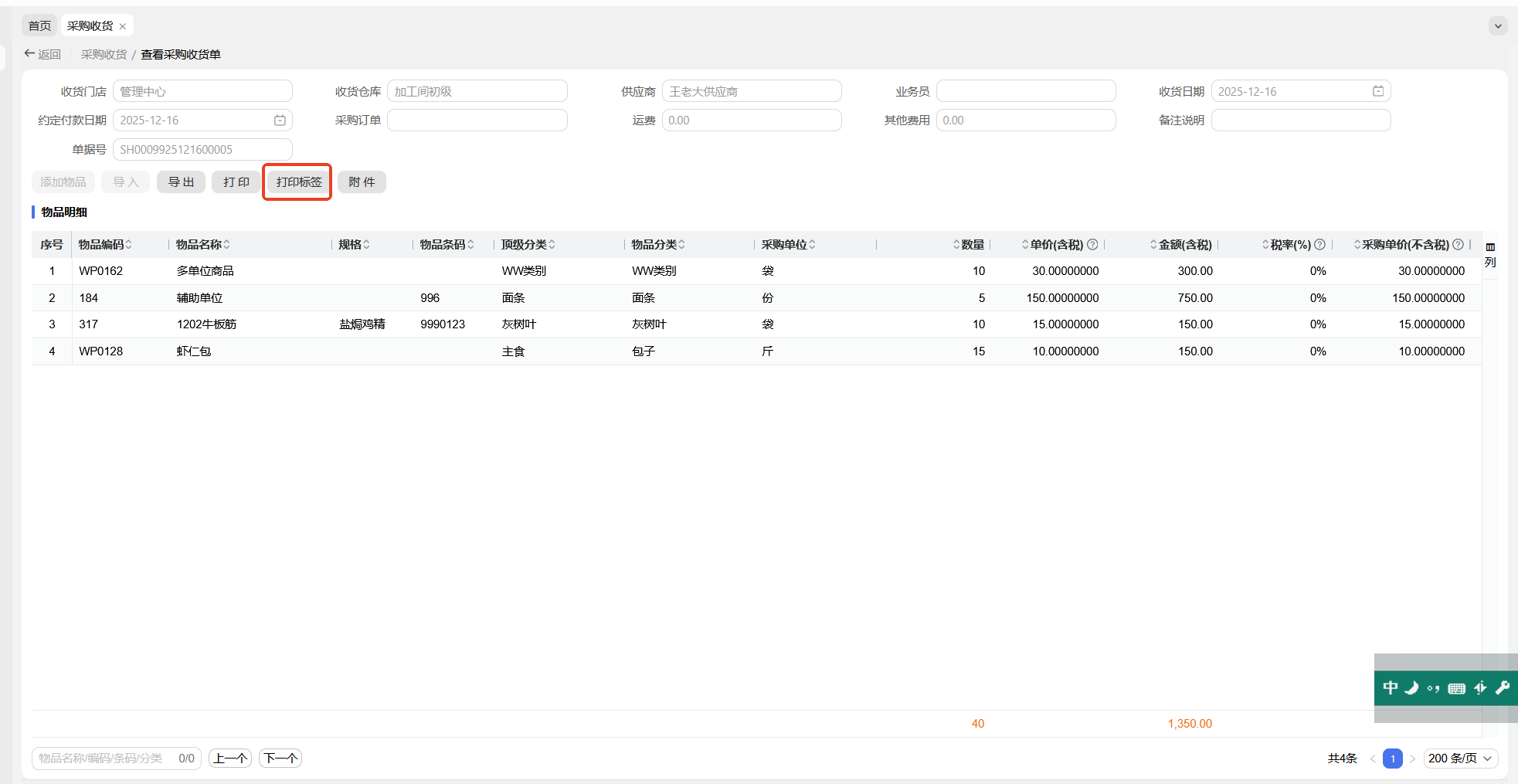 收货单明细增加“打印标签”功能
