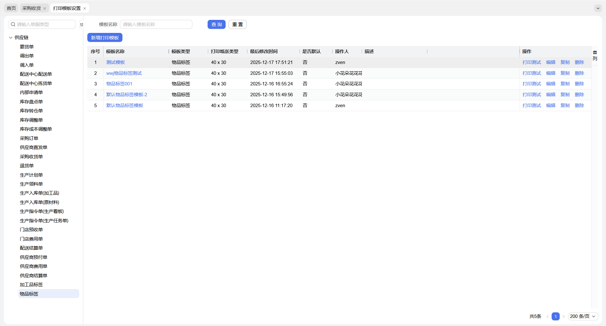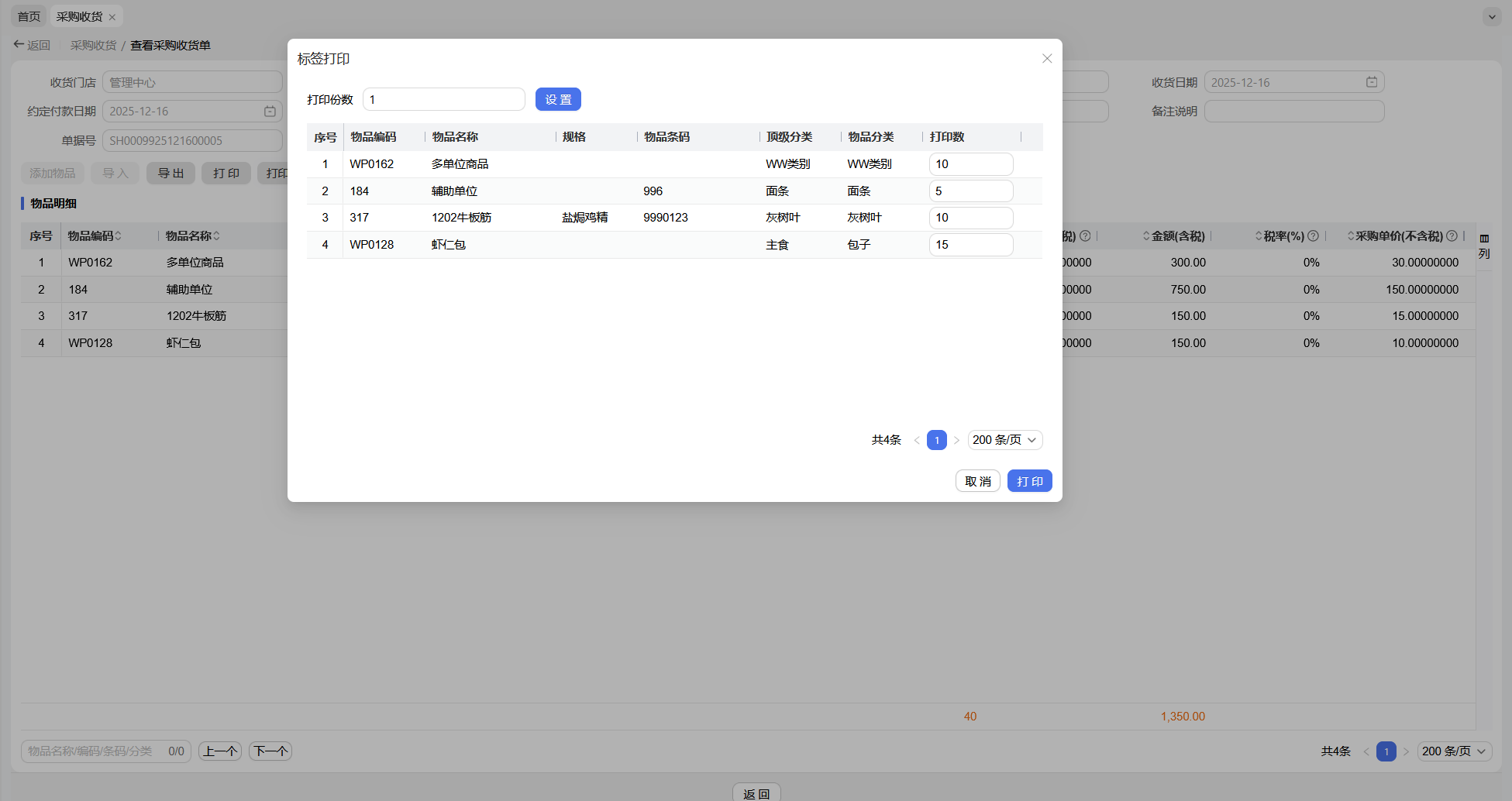 【供应链】收货单支持标签打印
