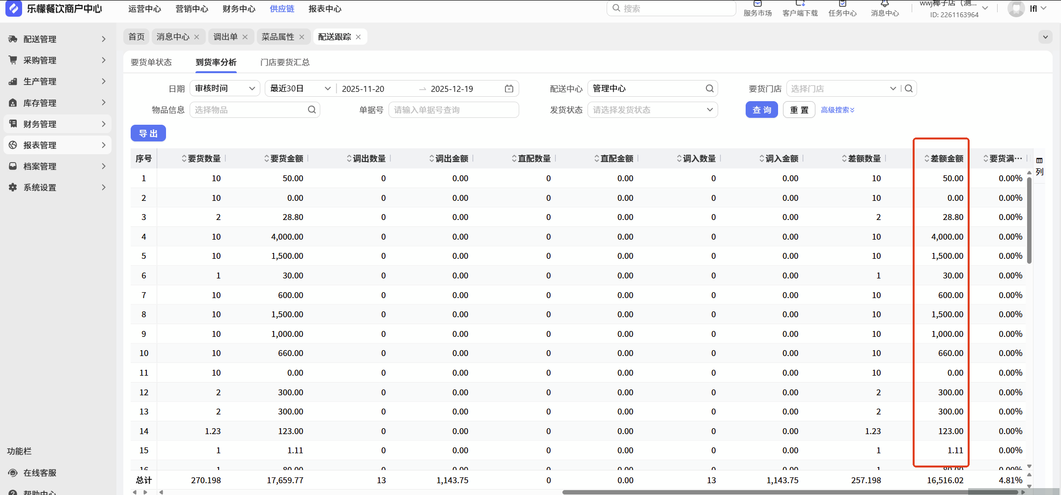 配送追踪-到货分析率增加差额金额