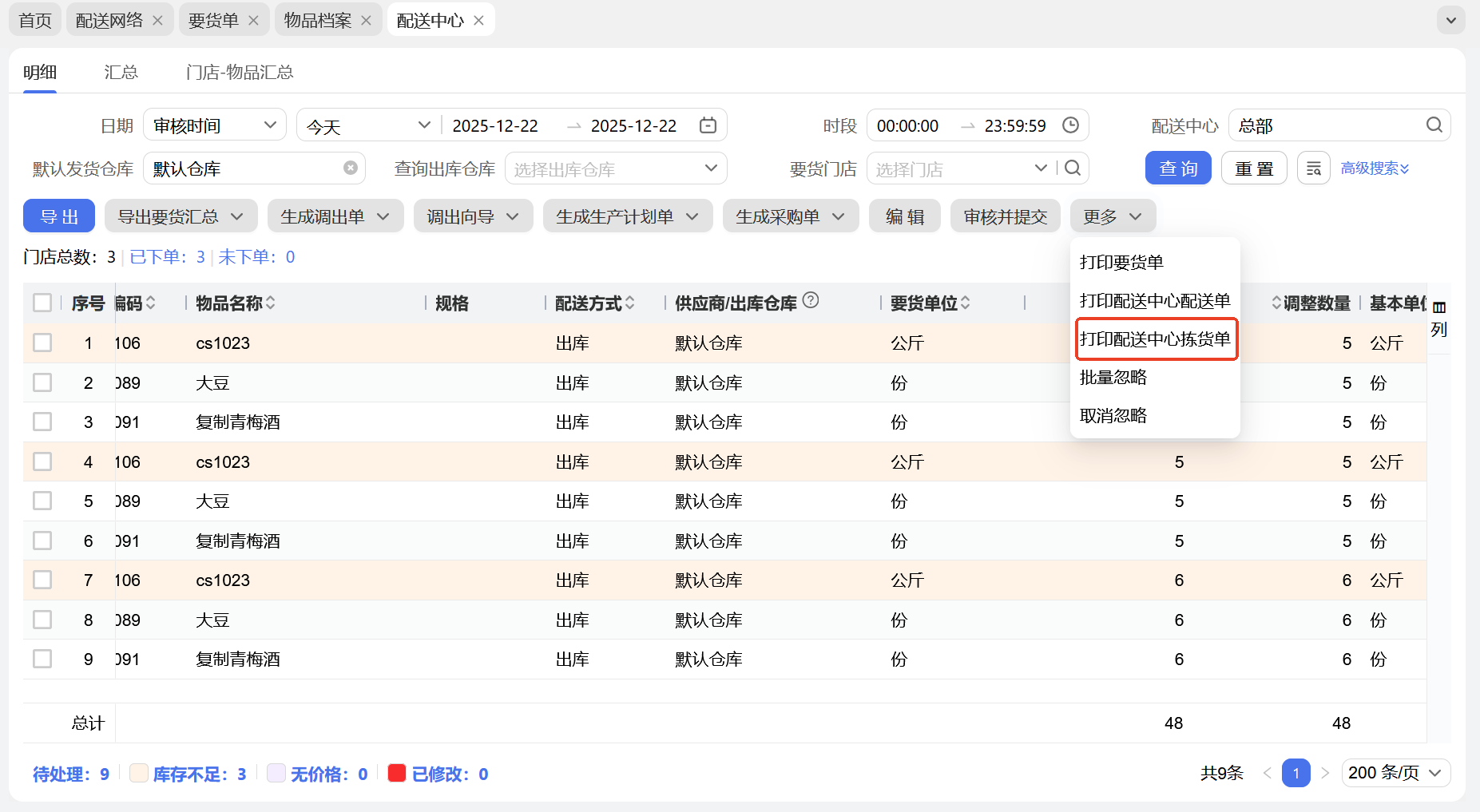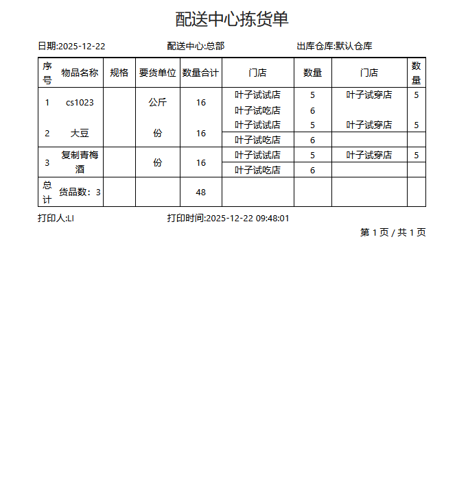 部分商户在配送中心希望能以播种式的方式进行拣货,希望能以物品维度打印拣货单