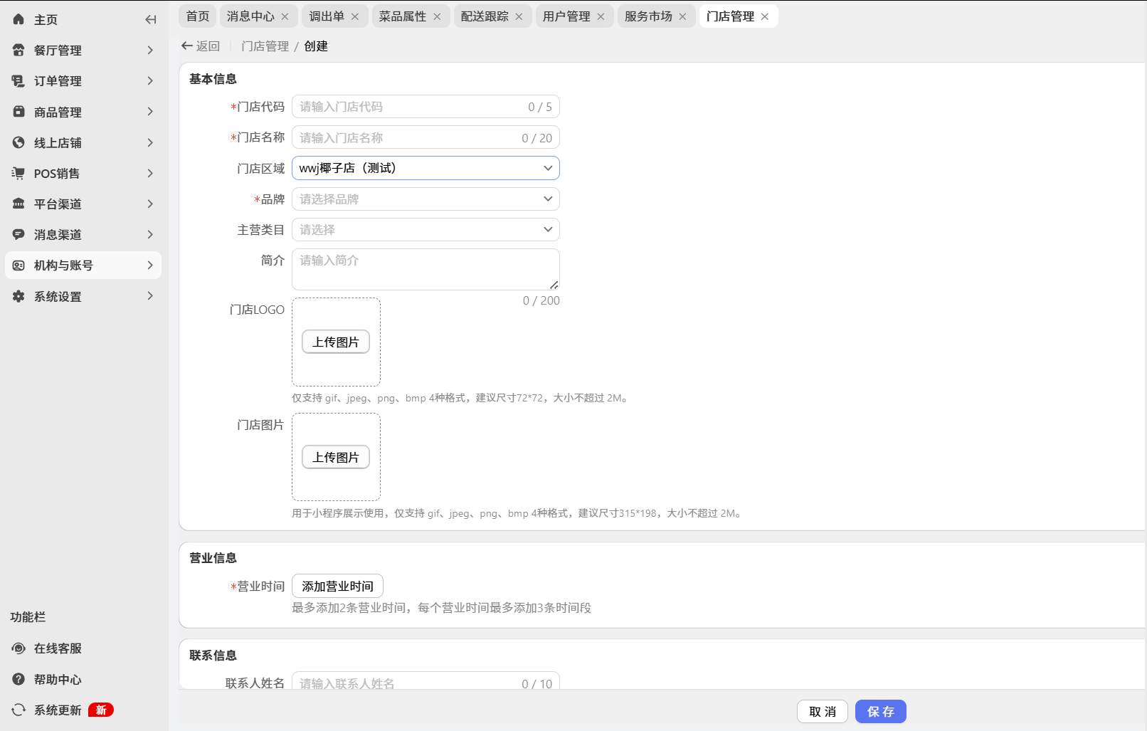创建门店时,支持设置门店区域