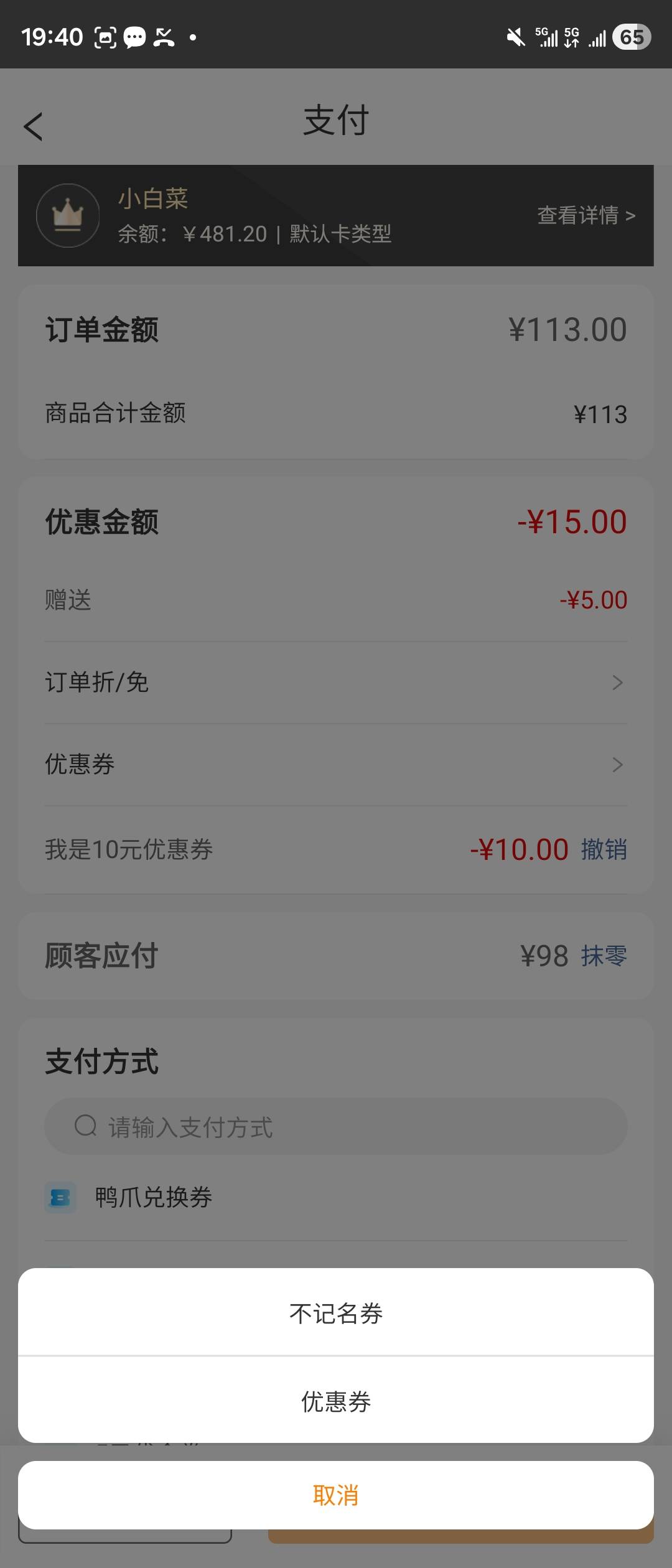 乐檬点餐助手中优惠券选择支持选择会员名下的优惠券以及录入优惠券号查询并使用