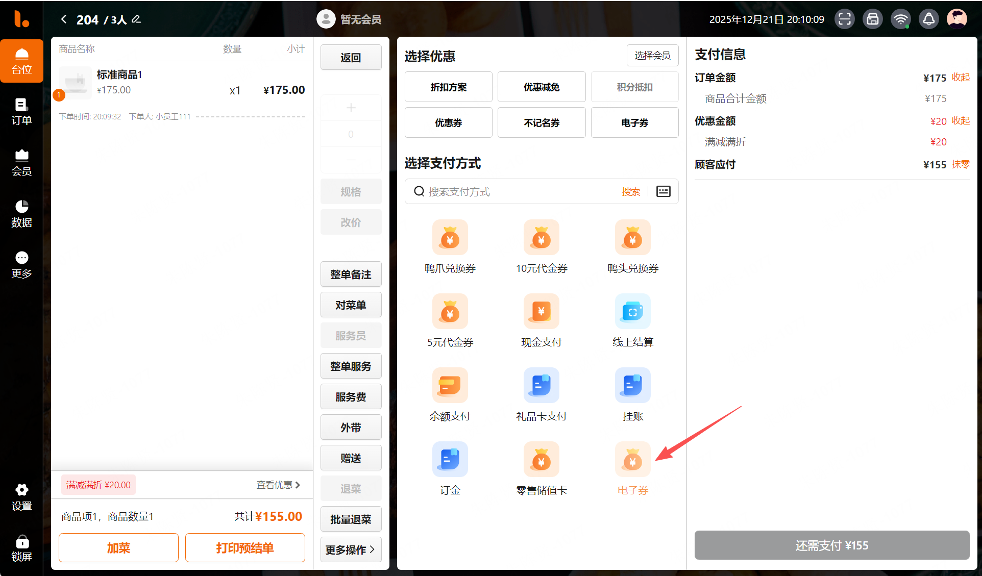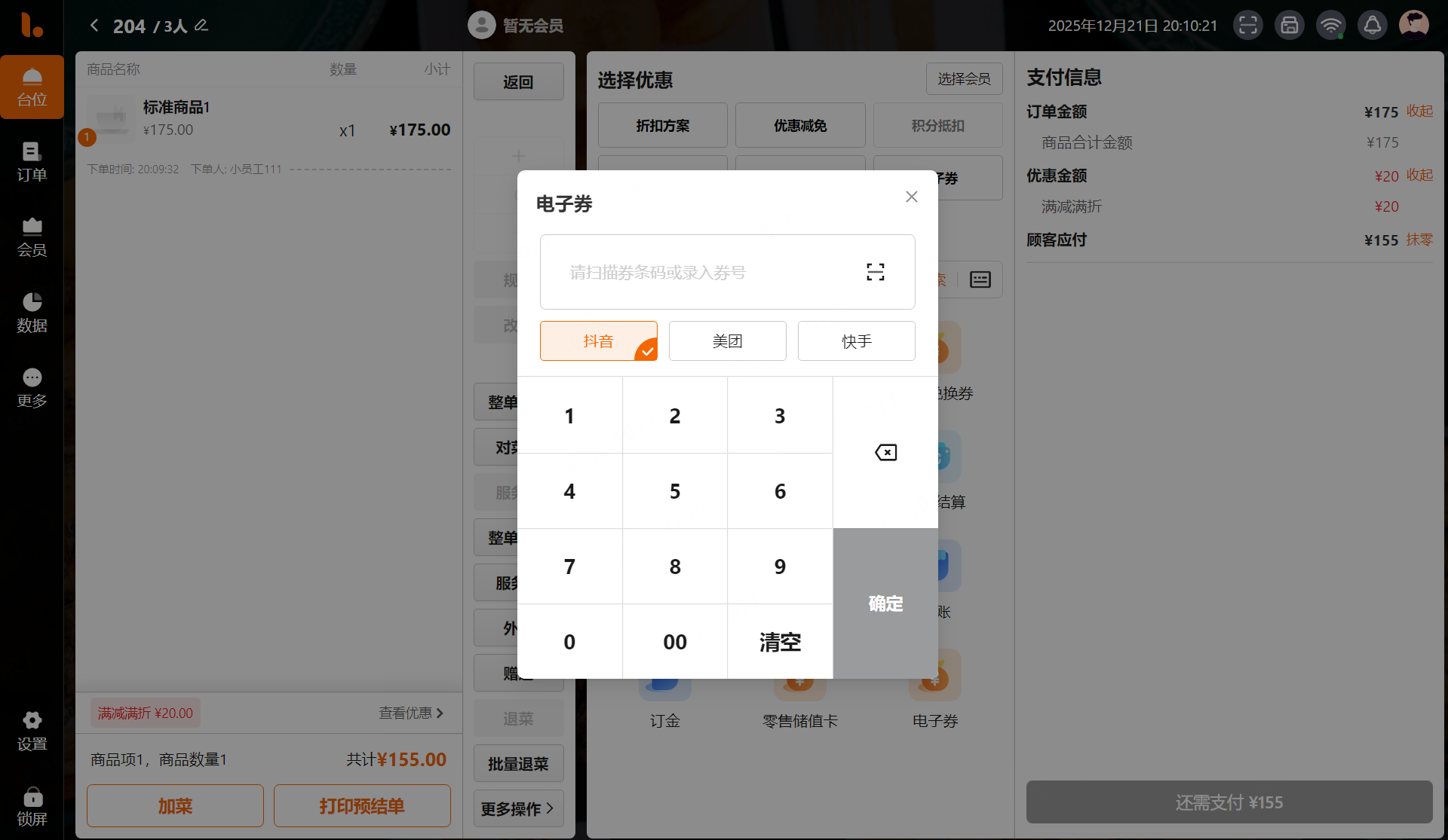 【乐檬点餐助手】支持会员券选择、优惠券录入操作