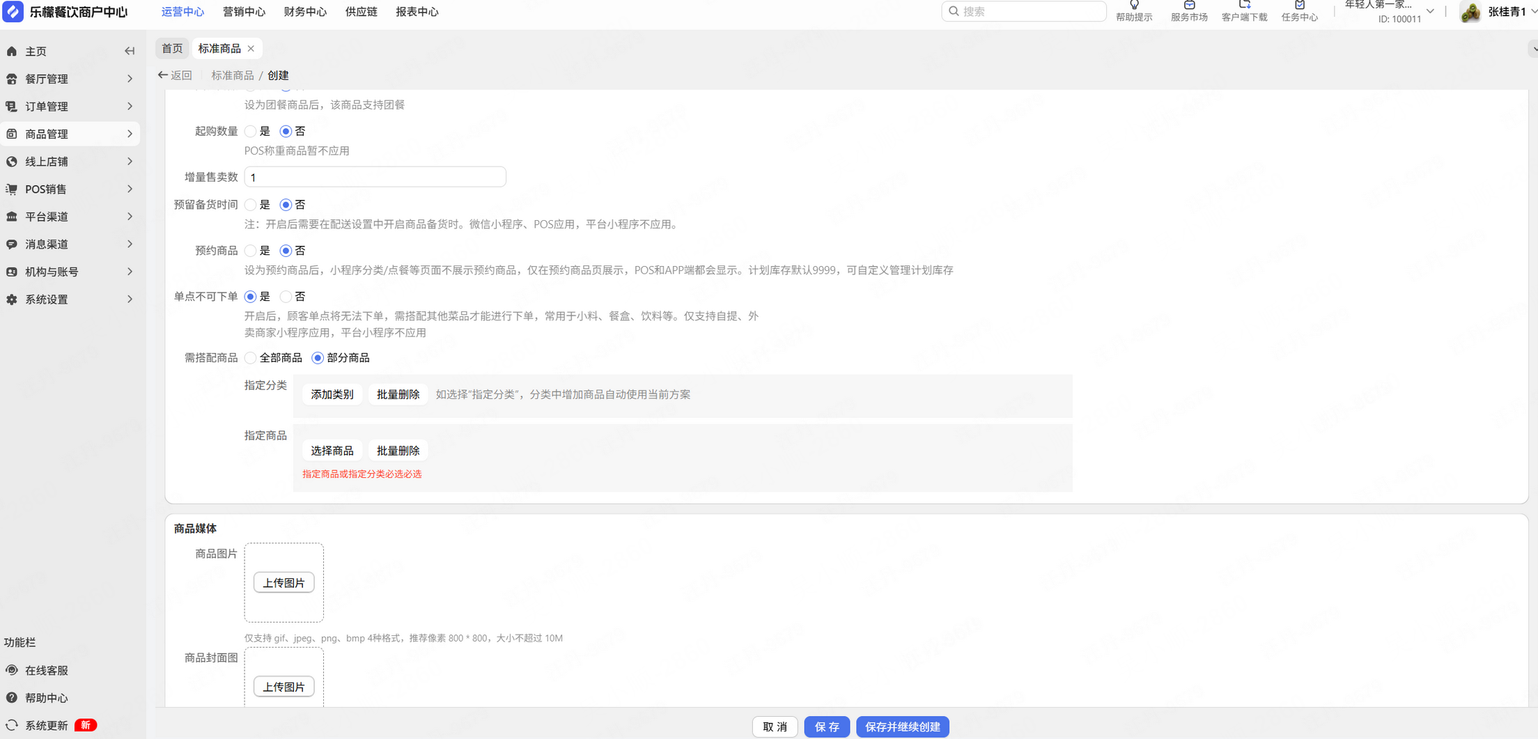 web端,新增/编辑商品(标准商品和门店标准商品),增加“单点不可下单”,默认否;
