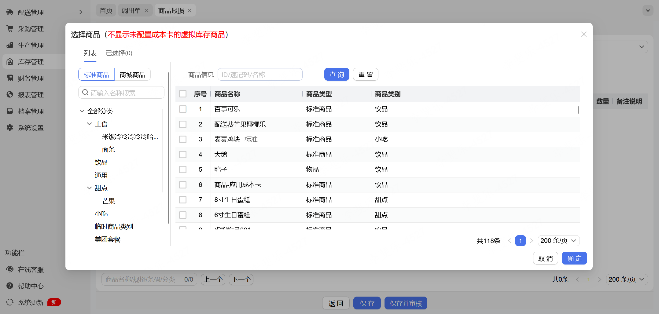 商品报损单明细添加商品时, 将过滤草稿/存档状态下的标准商品和商城商品