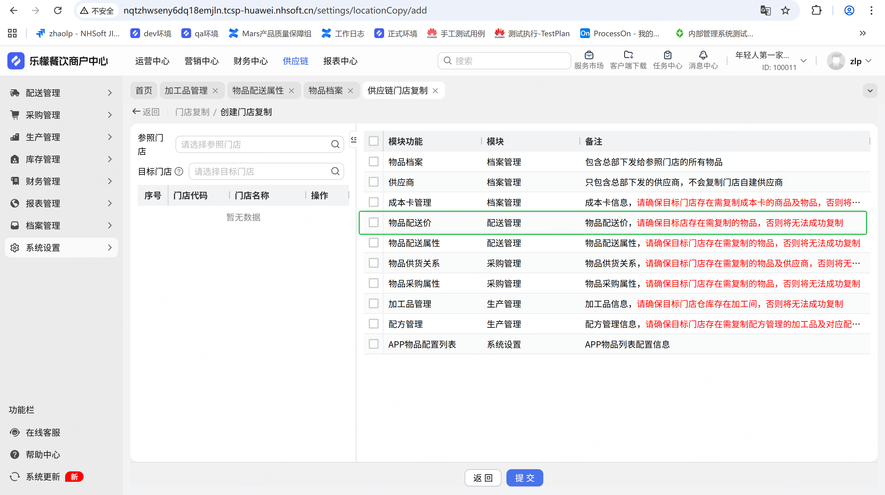 供应链门店复制时,增加门店配送价