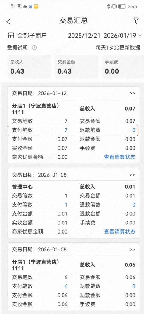 4.支付汇总报表点击退款次数时,跳转到指定的退款记录中。为了防止误操作,退款笔数位置调整到右侧。