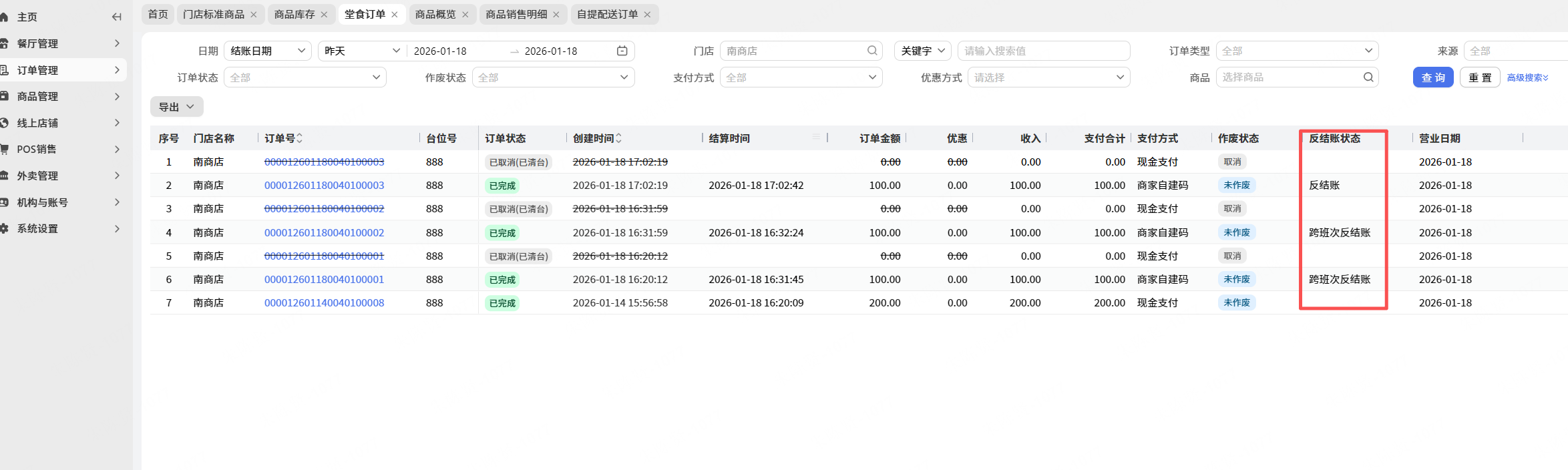 1.【网页】堂食订单列表增加是否为反结账状态字段