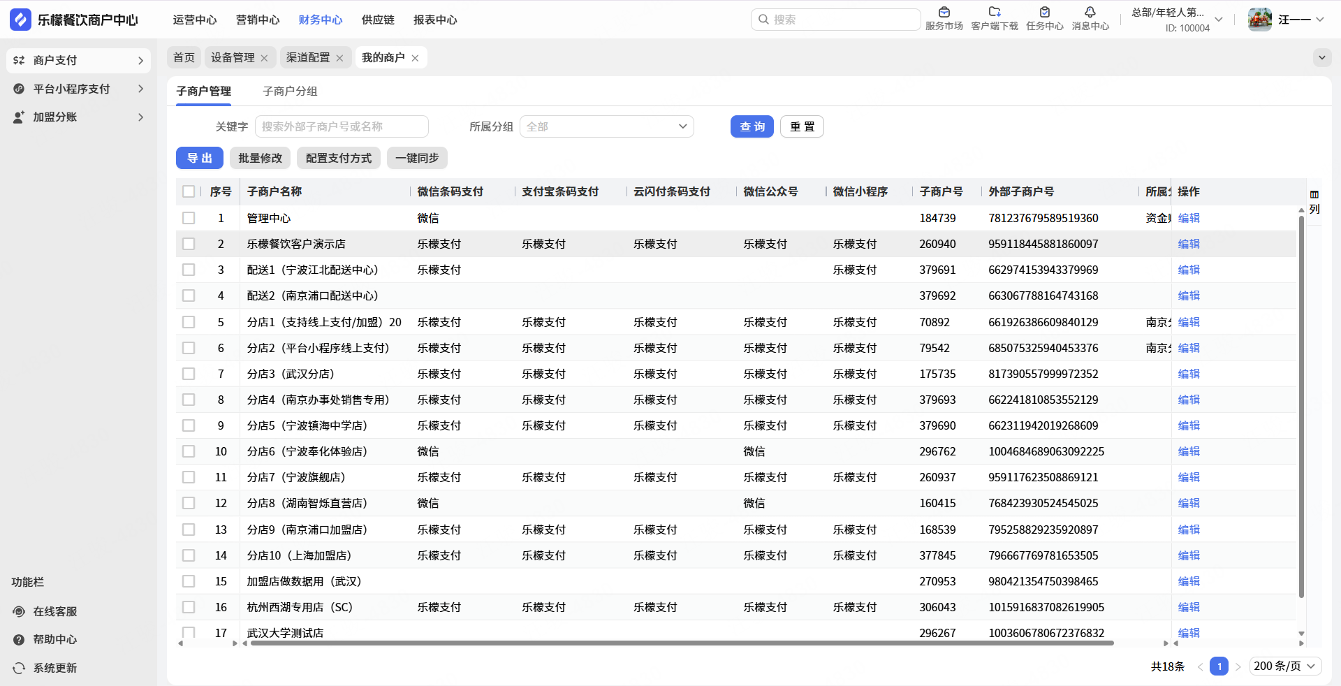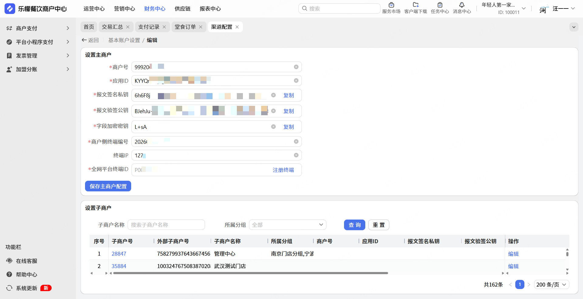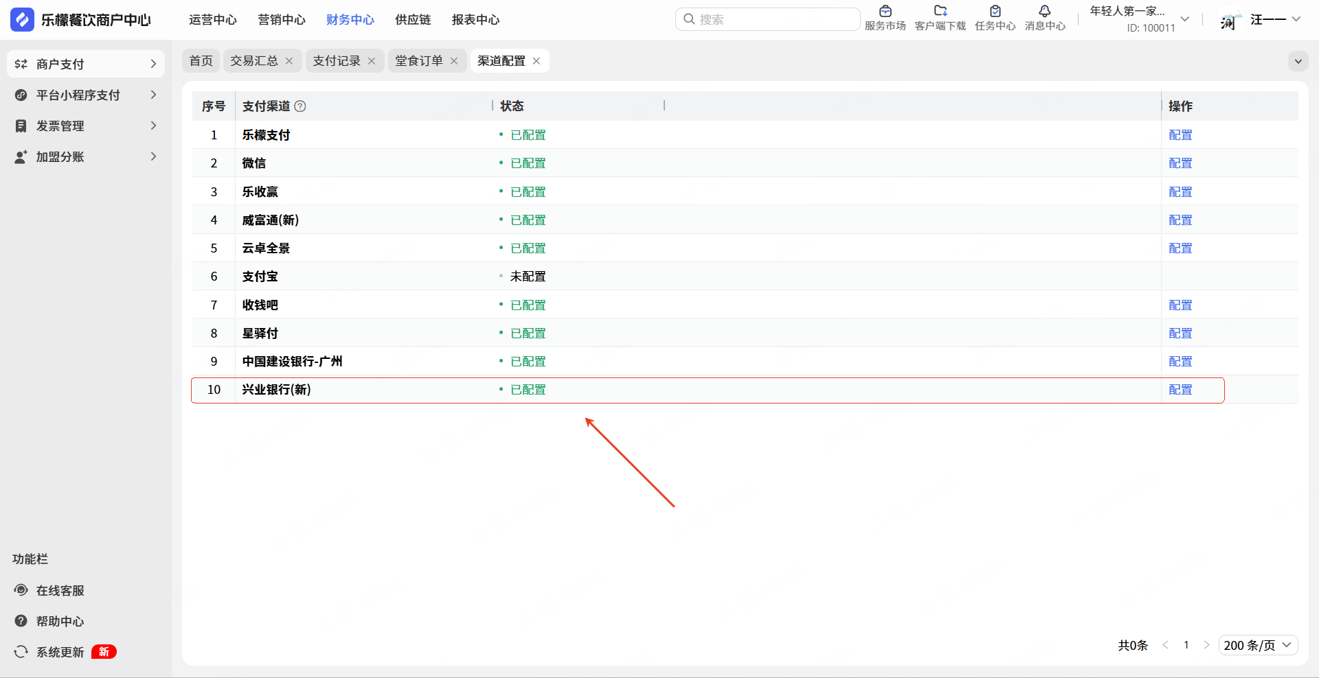 操作路径:网页-财务中心-商户支付-渠道配置