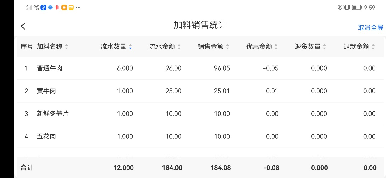 3.APP端销售报表新增加料销售统计,支持全屏查看。