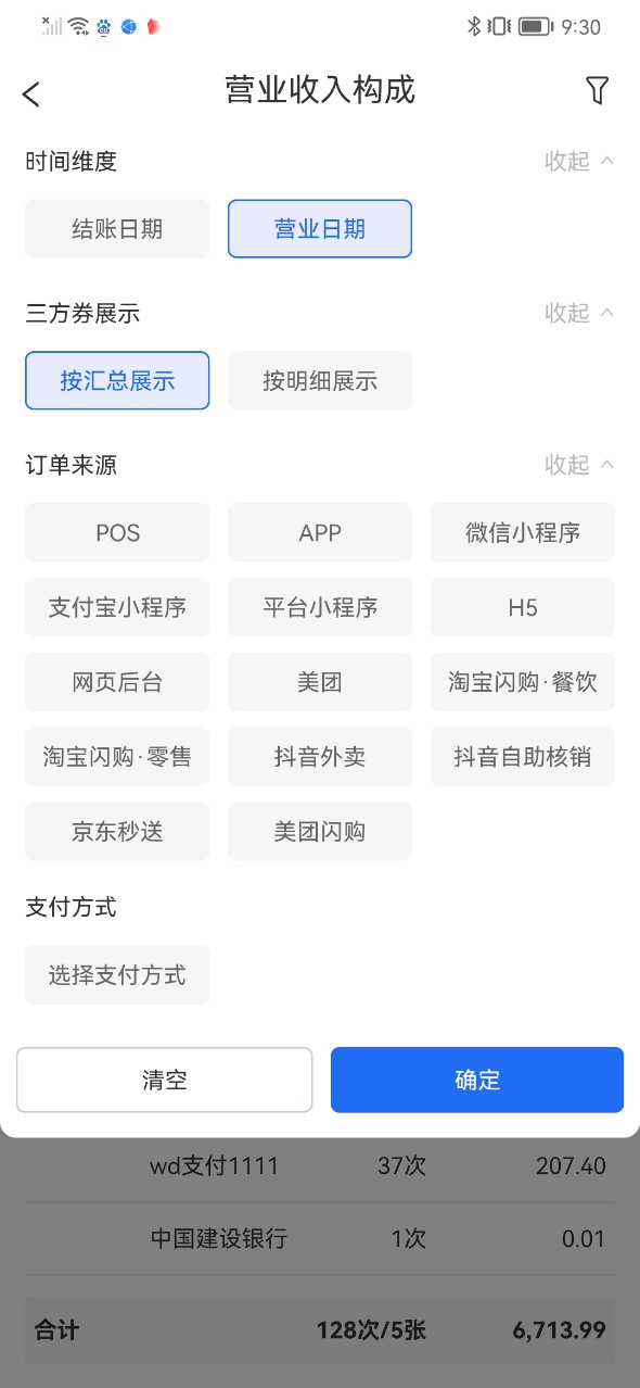 APP按支付类型统计营业收入数据,方便查看营收情况