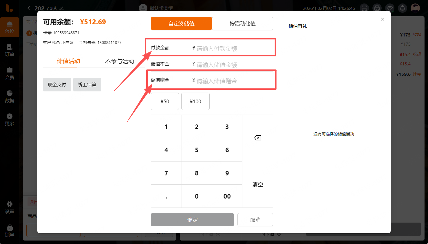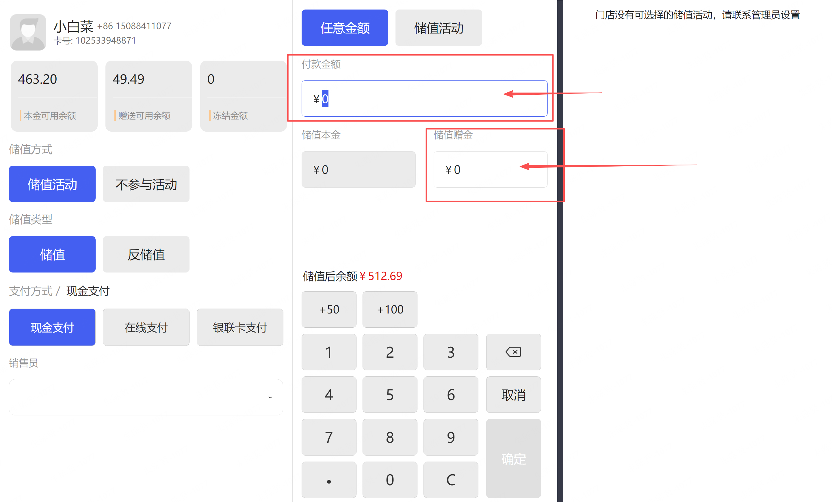 商户给客户储值,付款金额可根据客户需要付款的金额随意录入,赠金需要继续控制不允许录入