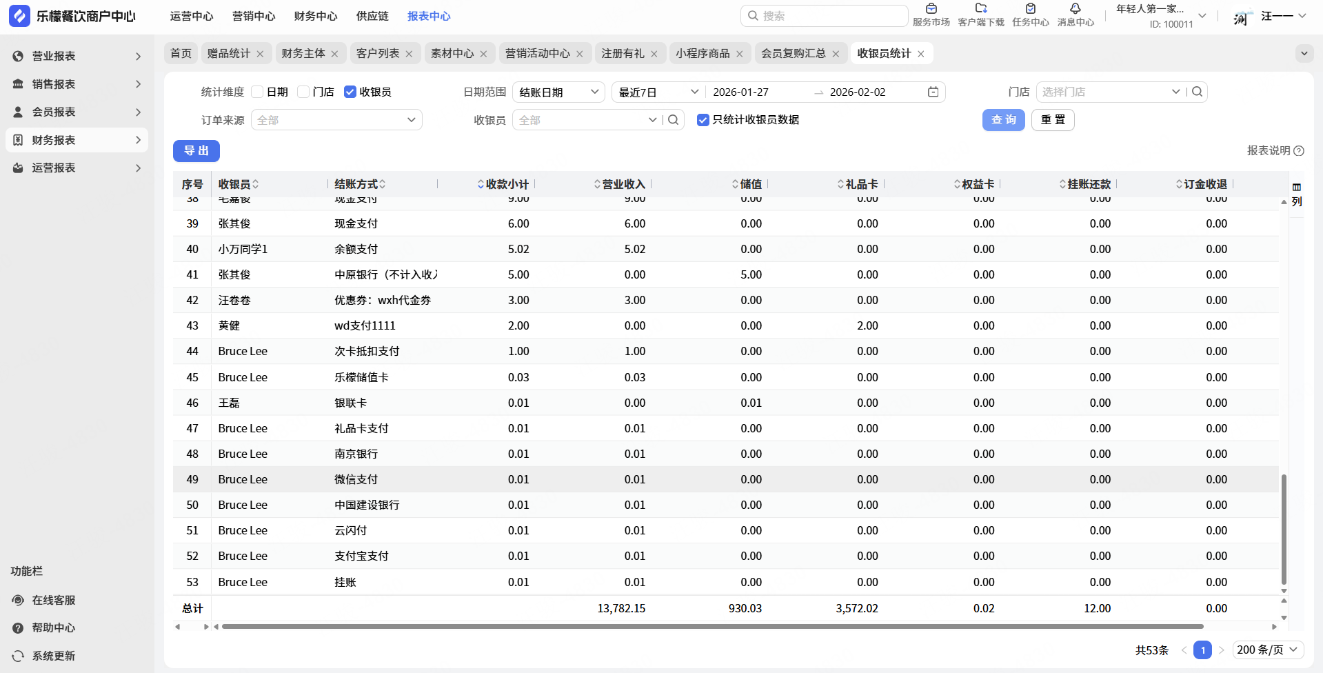 3.收银员统计支持搜索不同订单来源,默认只统计含收银员的数据。