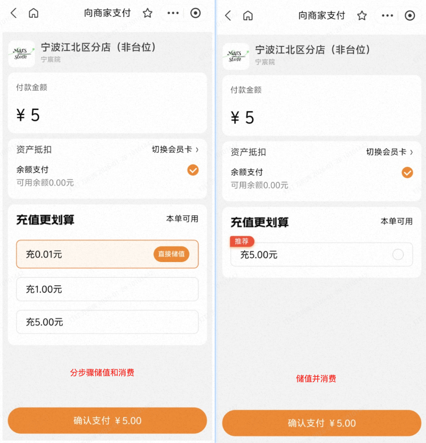 储值和消费一步时,虽然方便,但是顾客容易把储值金额输入到消费金额。