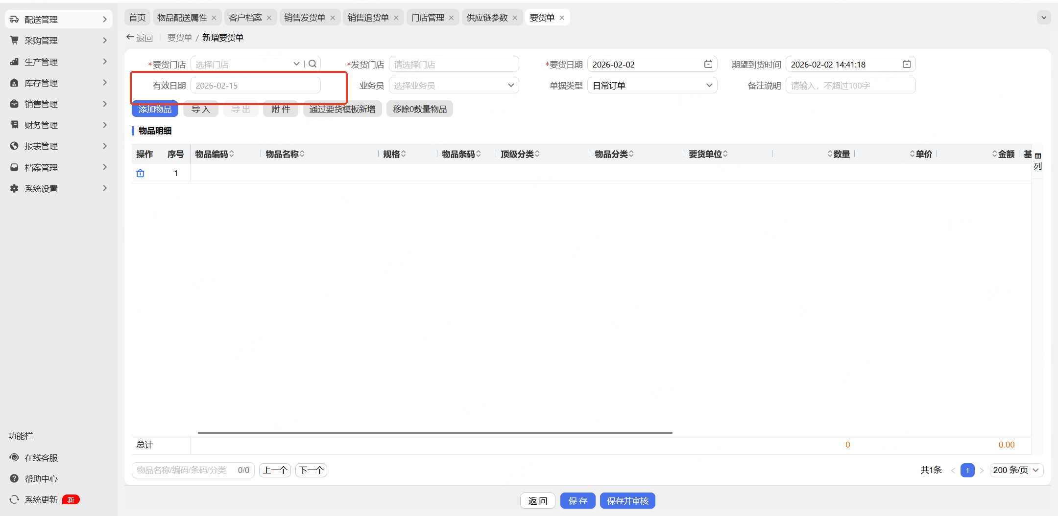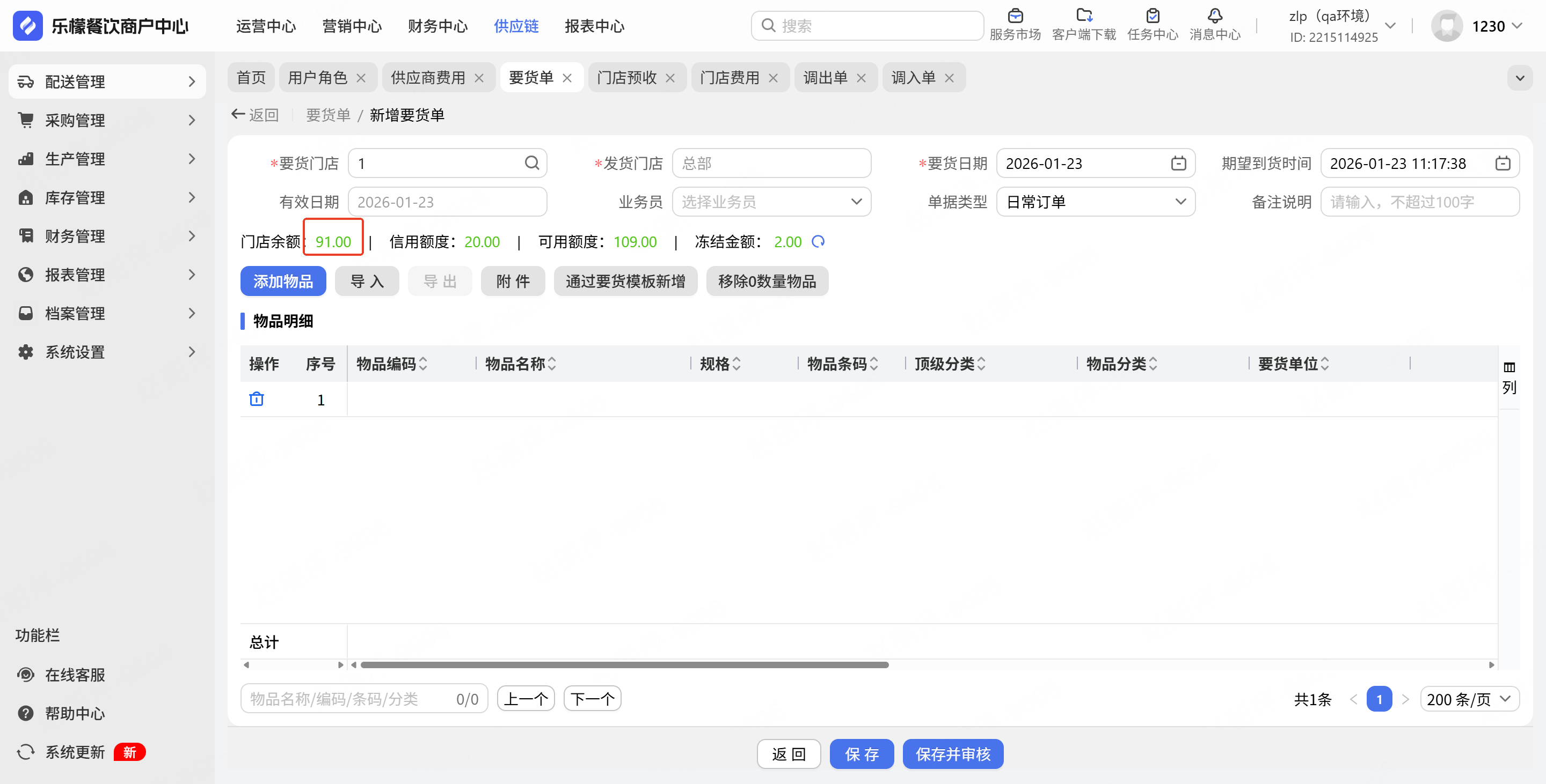 商户中存在配送中心要控制门店的要货单额度,在指定限额内,可进行要货单的申请,超出限额则不允许要货。