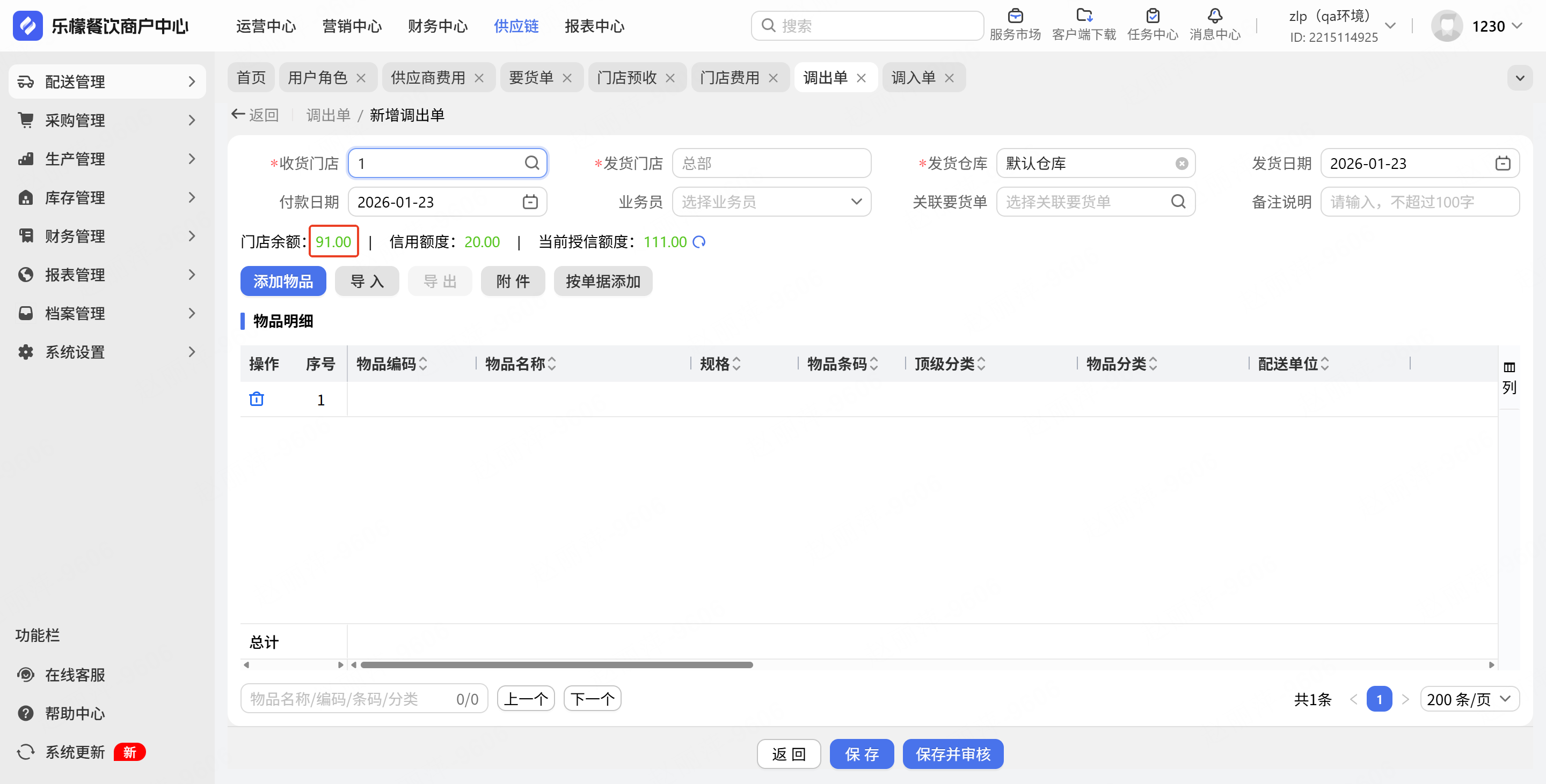制作调出单时,也可展示对应额度数据