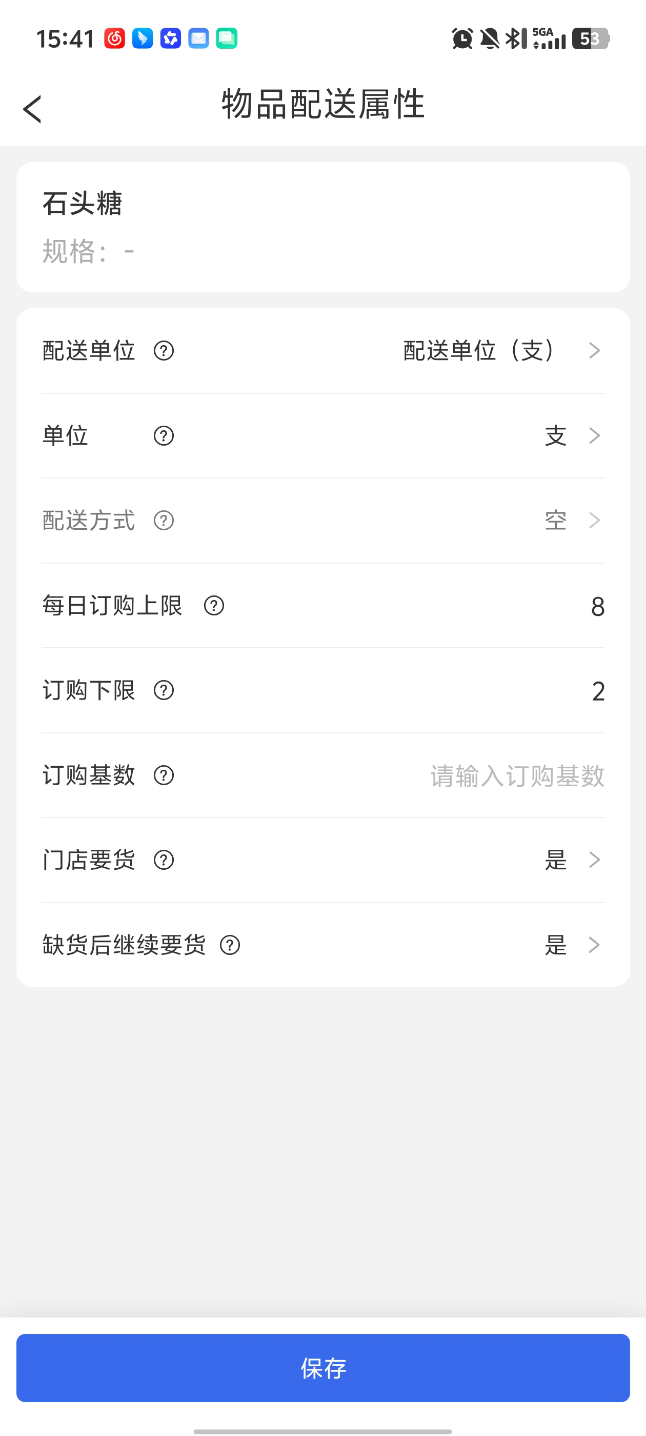 部分商户希望在APP端维护物品配送属性