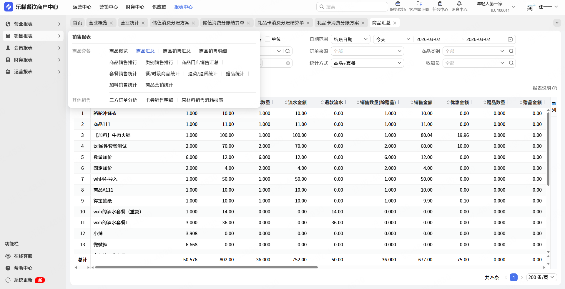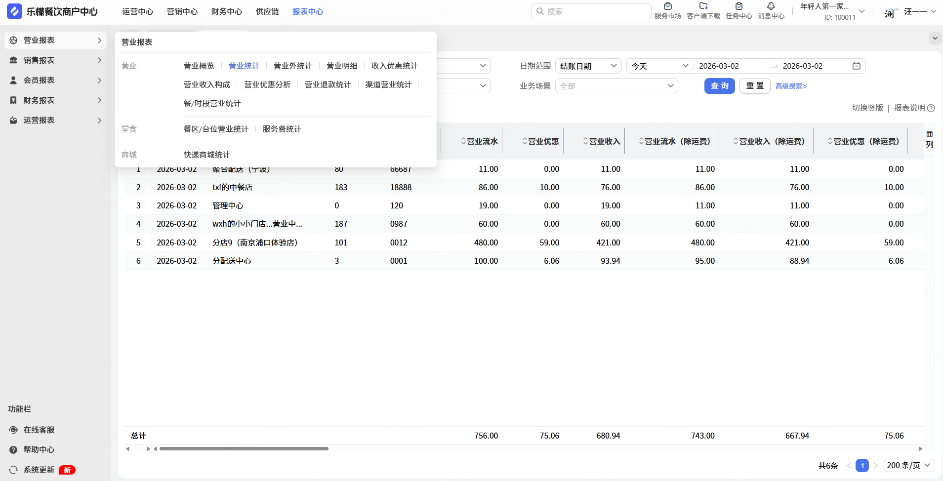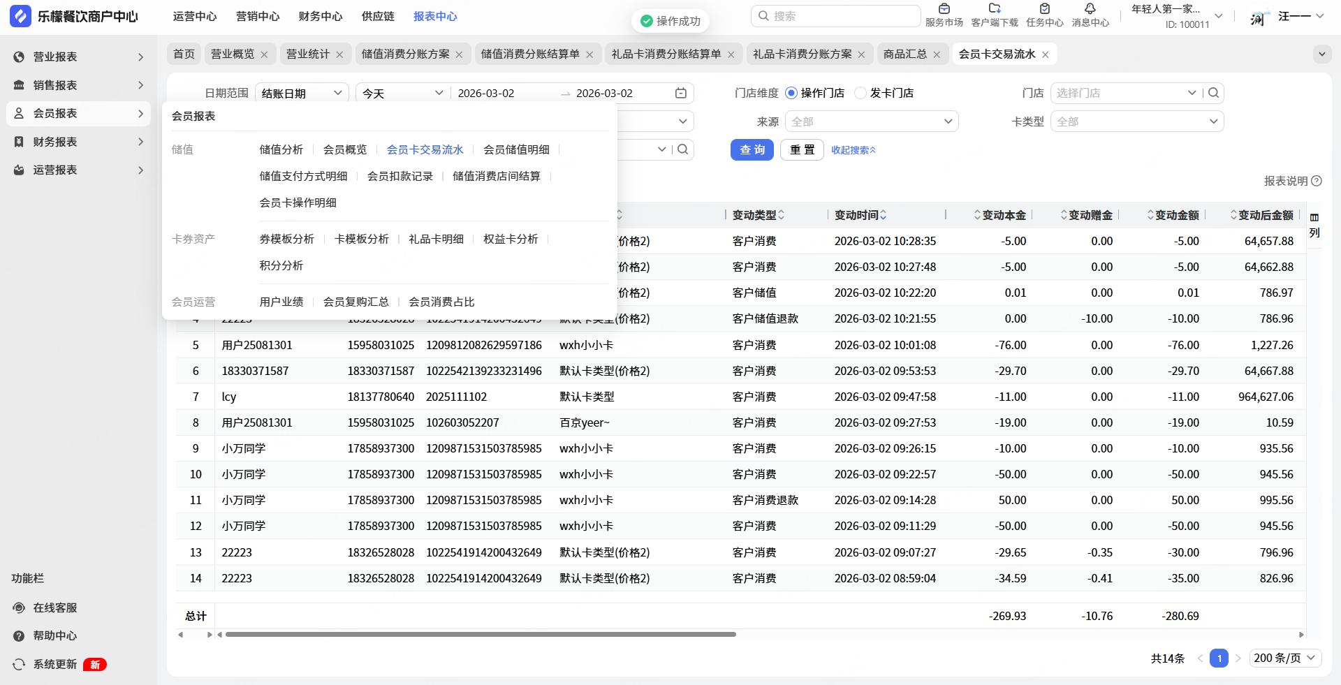2.系统报表默认宽度调整,保证标题/名称展示全的情况下,尽量减小列宽。针对名称等字段,最多展示15个中文。目前已调整营业报表、销售报表、会员报表