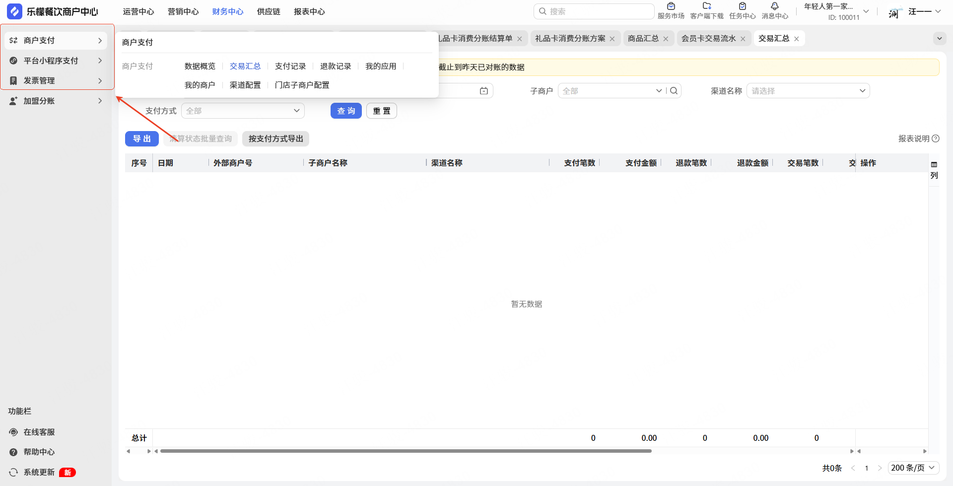 商户支付-支付记录