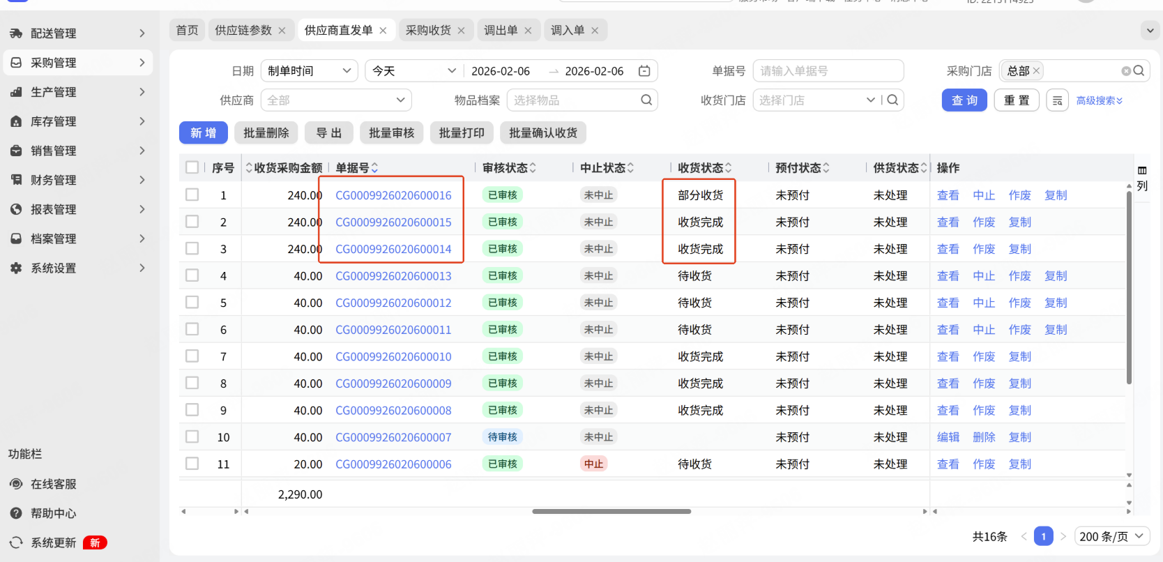 【供应链】直发单收货状态优化