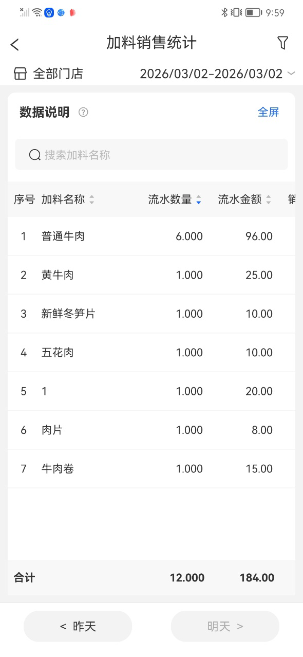可按照日期/门店维度筛选,该报表只统计加料销售数据。