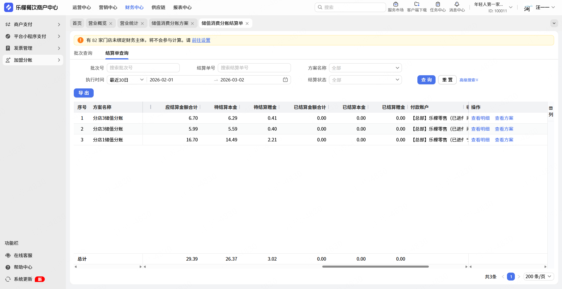 1.储值消费分账结算单-结算单查询中,增加列:待结算本金、待结算赠金、已结算本金、已结算赠金。